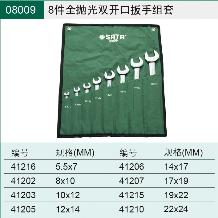 • 08009 8 개 완전 광택 더블 오픈 엔드 렌치 세트