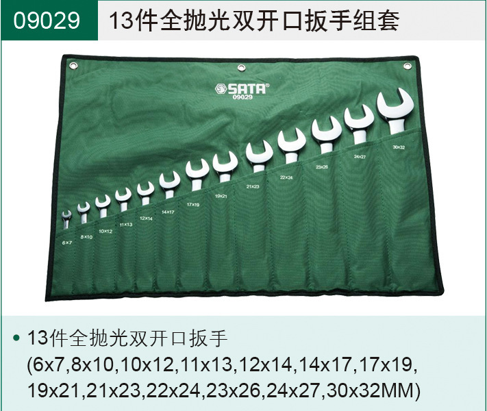 • 09029 13 피스 완전 광택 더블 오픈 엔드 렌치 세트