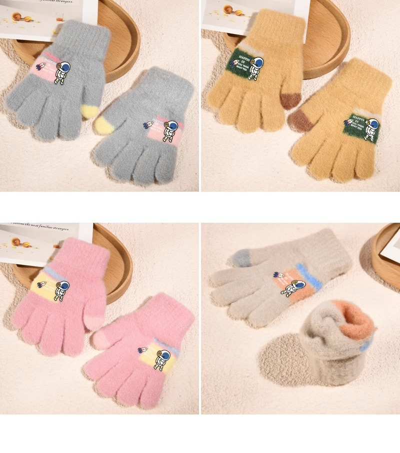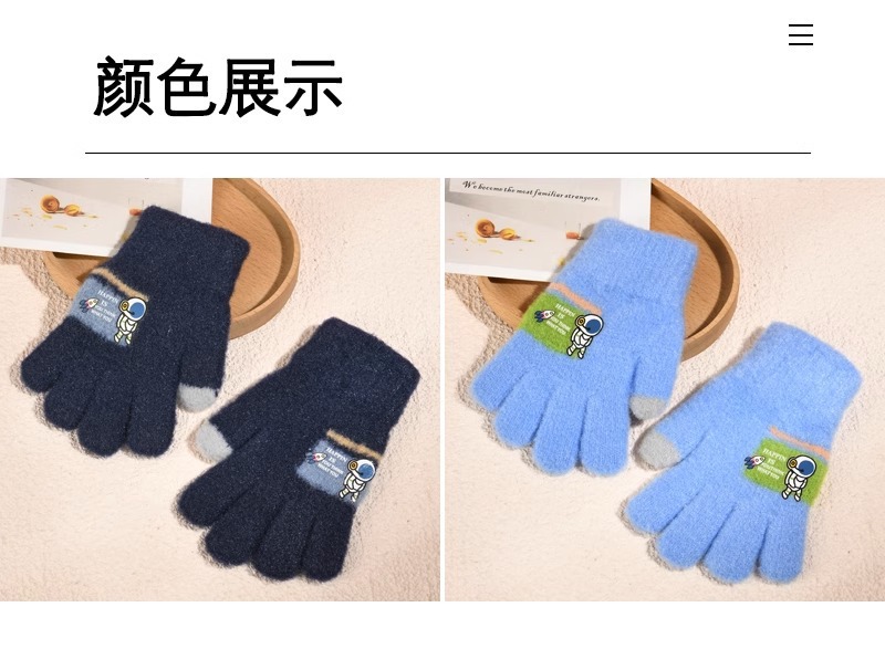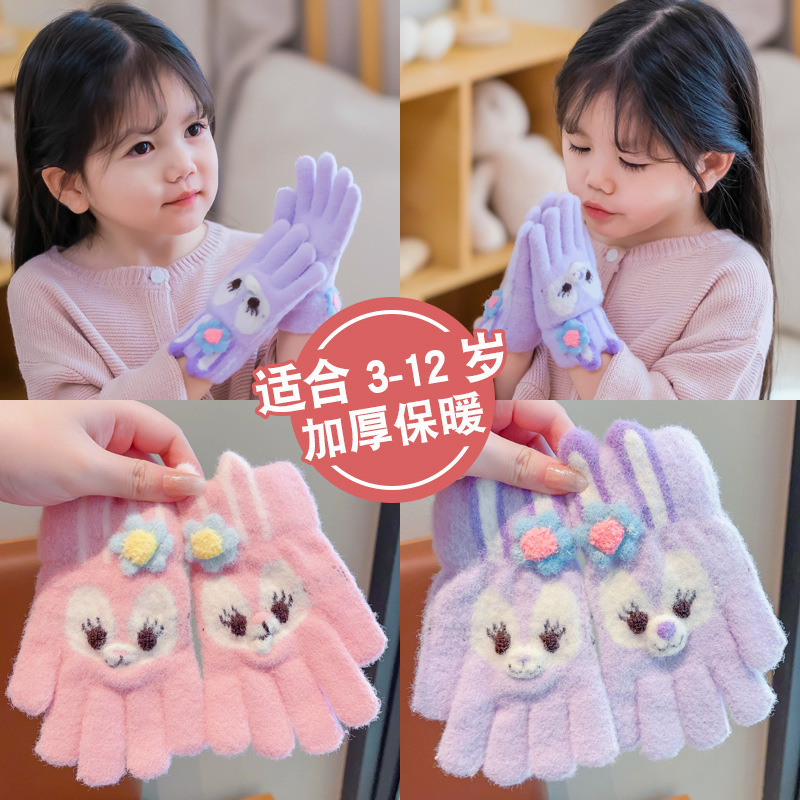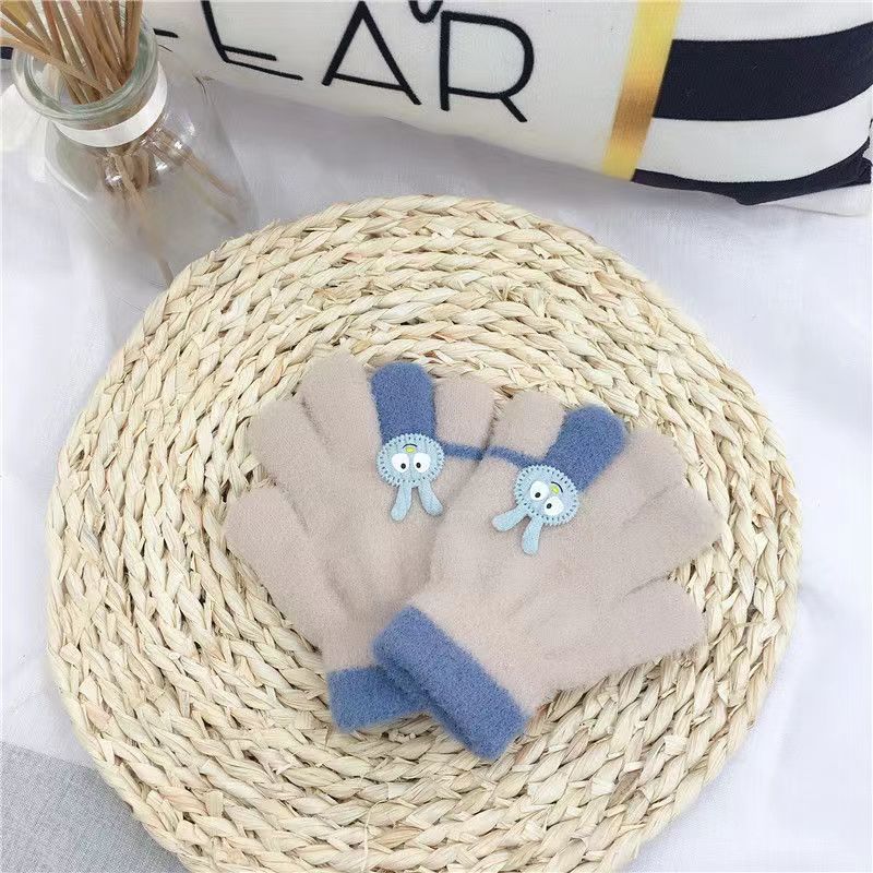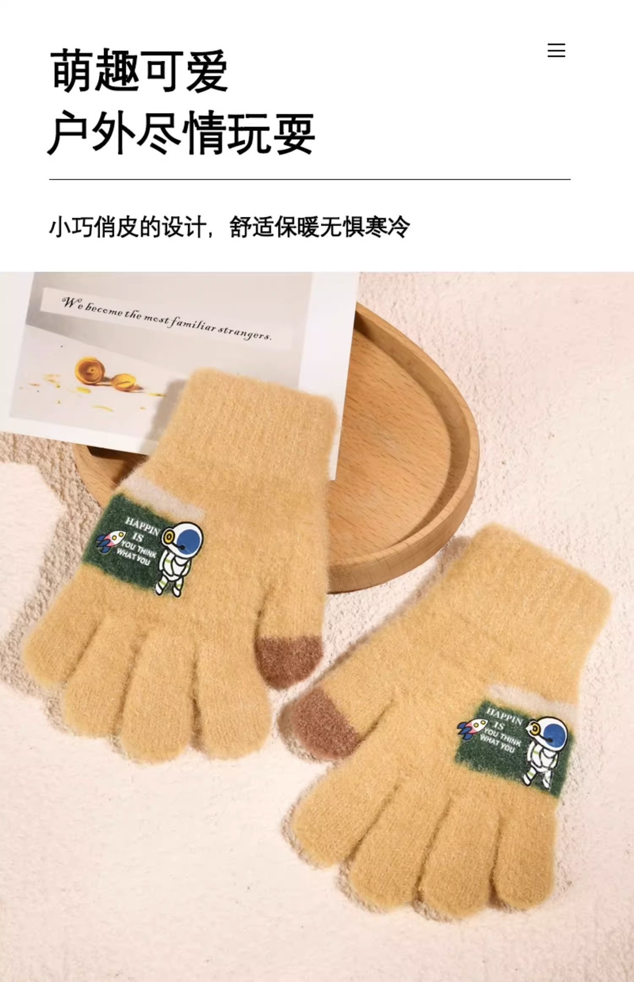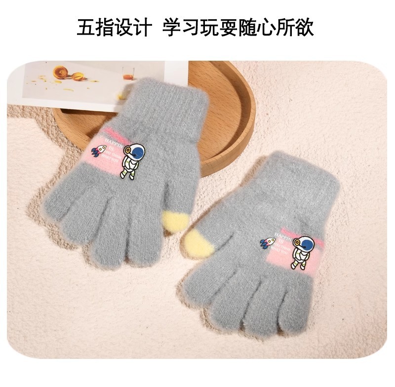 귀여운 어린이 가을과 겨울 따뜻한 다섯 손가락 장갑 학생 쓰기 손가락 타이핑 만화 기모 두꺼운 장갑스토어 가기