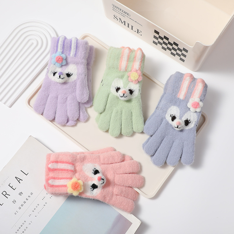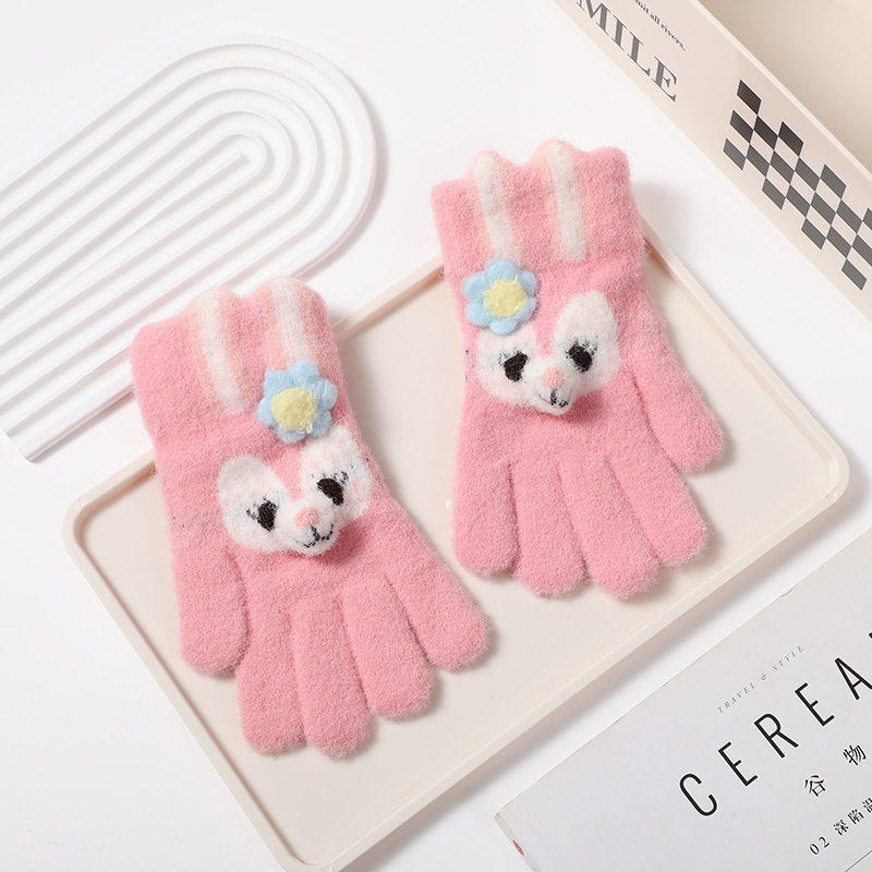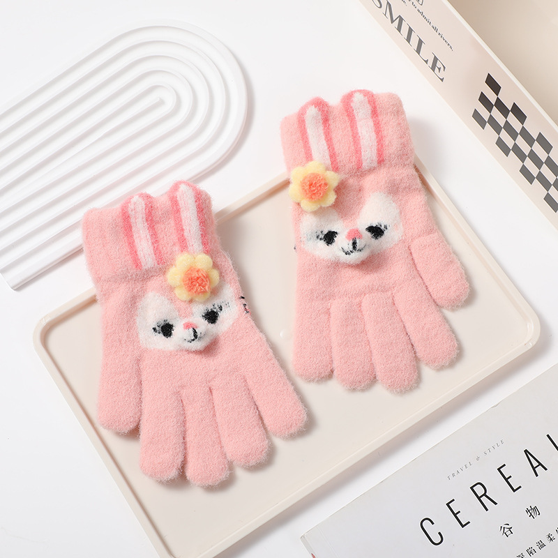 • 토끼 다섯 손가락 손가락 장갑 [4-12 세] 가벼운 핑크
