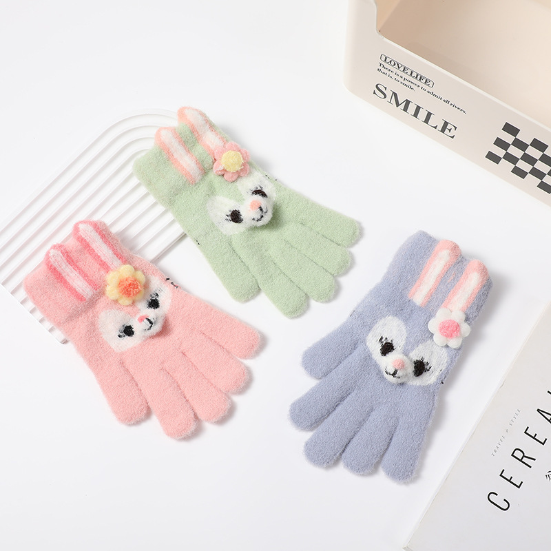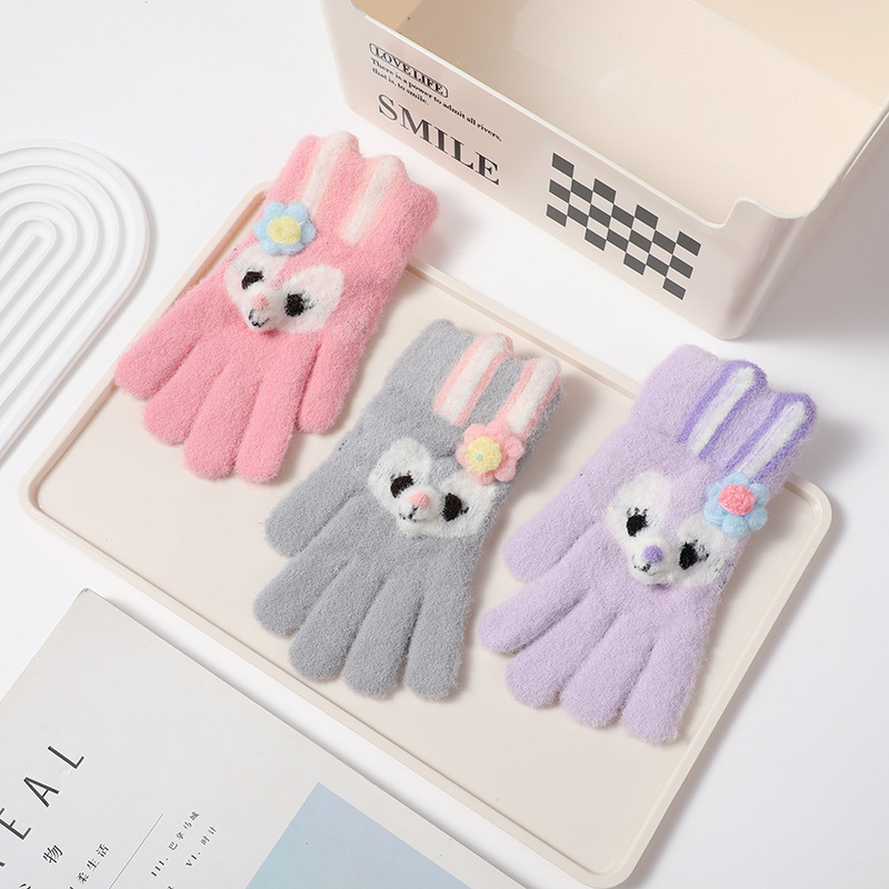 귀여운 어린이 가을과 겨울 따뜻한 다섯 손가락 장갑 학생 쓰기 손가락 타이핑 만화 기모 두꺼운 장갑