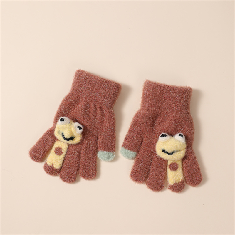 • 큰 머리 개구리 다섯 손가락 손가락 장갑 [3-10 세] 다크 브라운