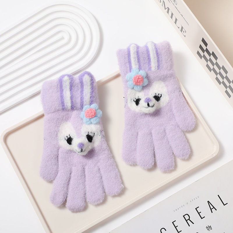 • 토끼 다섯 손가락 손가락 장갑 [4-12 세] 보라색