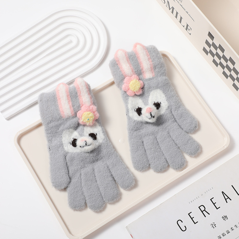 • 토끼 다섯 손가락 손가락 장갑 [4-12 세] 회색