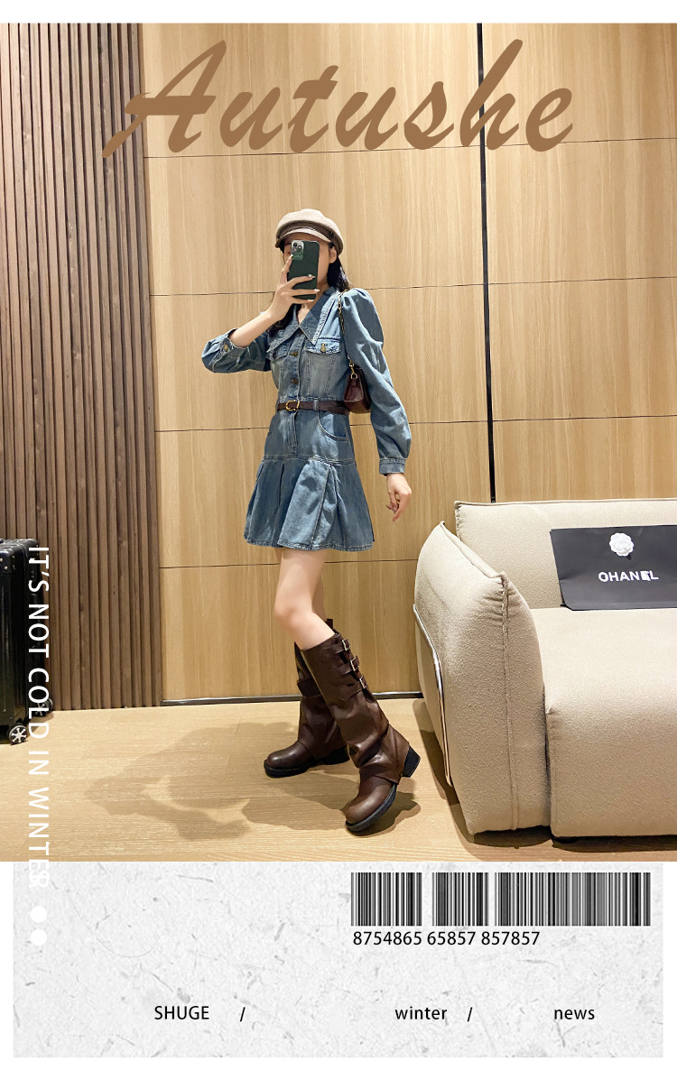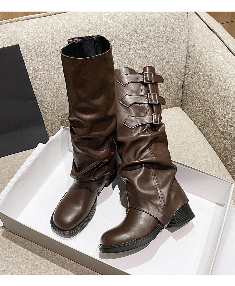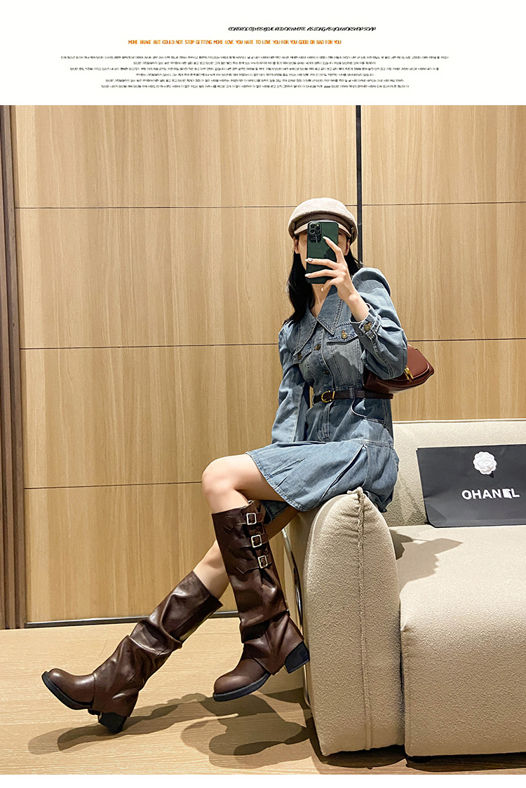 레트로 웨스턴 카우보이 롱부츠 여성용 2025 신상 가을 두꺼운 굽 부츠 멜라민 부츠 투웨이 부츠스토어 가기