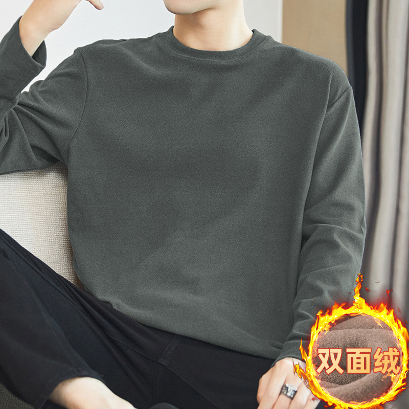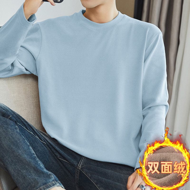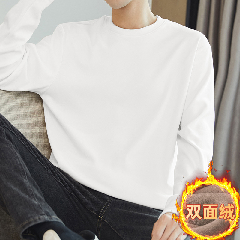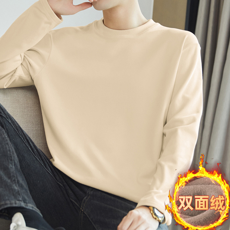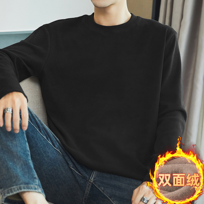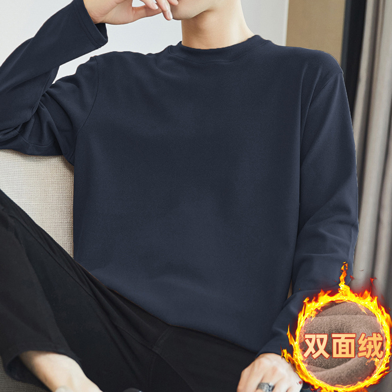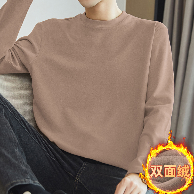280g 독일 벨벳 바닥 셔츠 남성 긴팔 티셔츠 가을과 겨울 따뜻한 양면 벨벳 크루 넥 티셔츠 단색 가을 셔츠