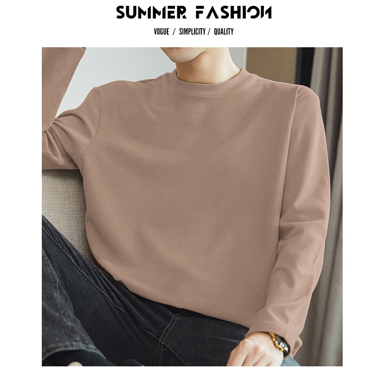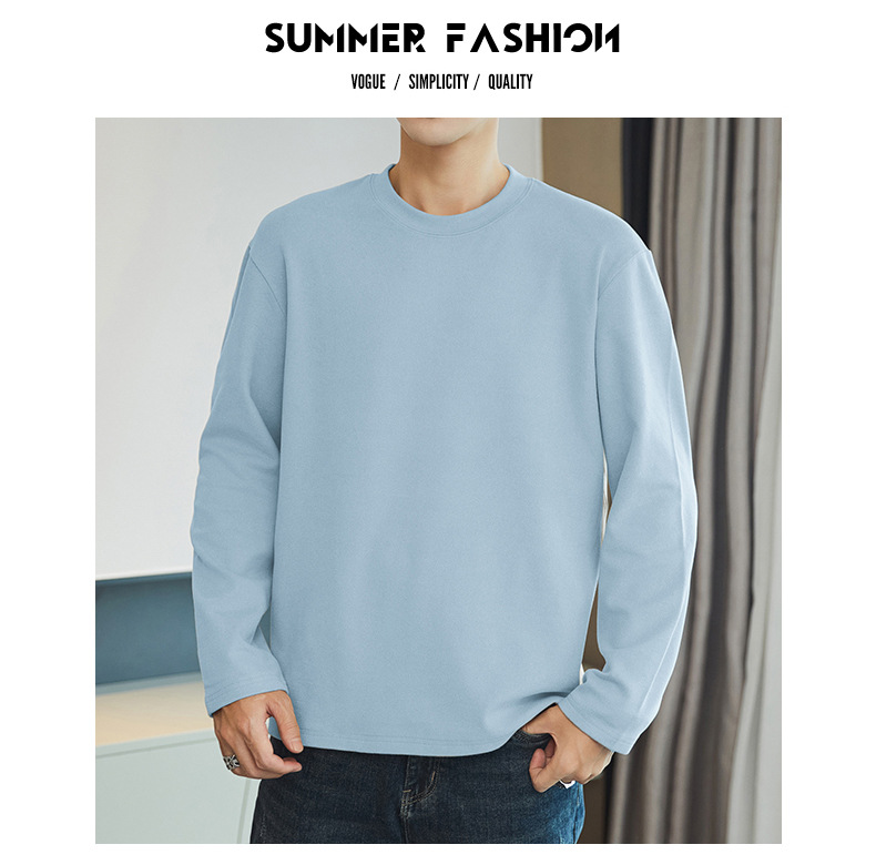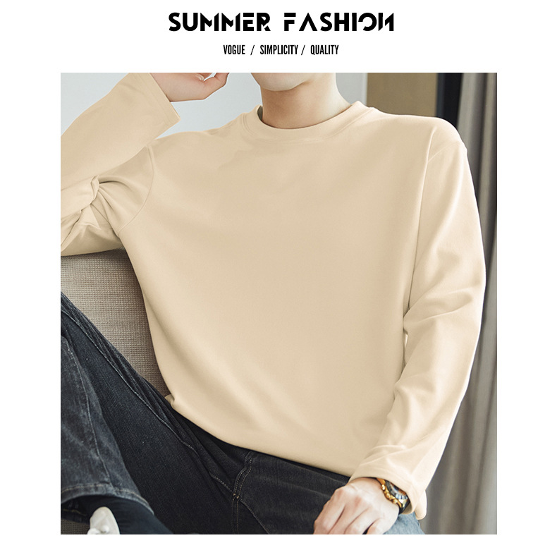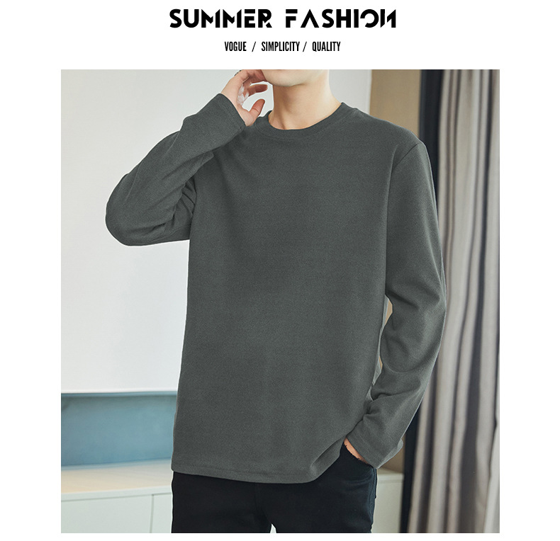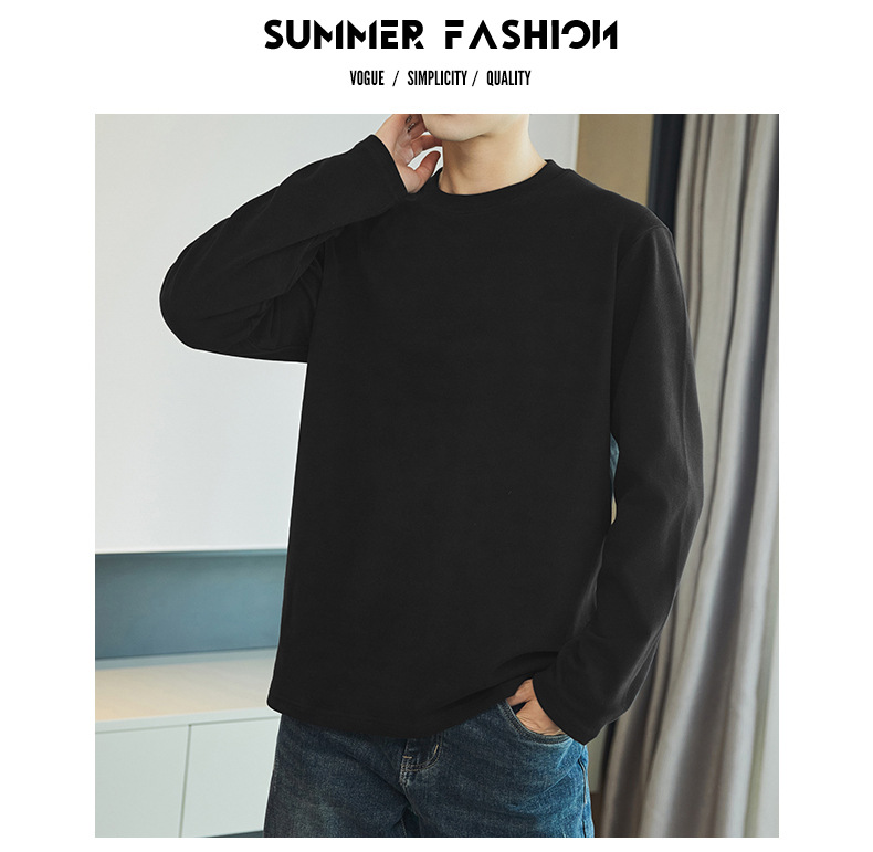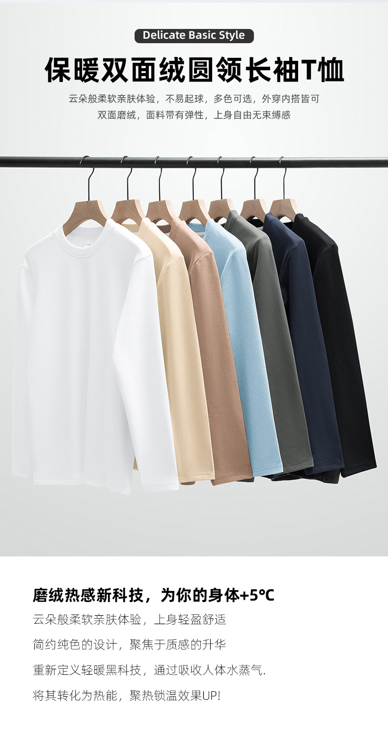280g 독일 벨벳 바닥 셔츠 남성 긴팔 티셔츠 가을과 겨울 따뜻한 양면 벨벳 크루 넥 티셔츠 단색 가을 셔츠