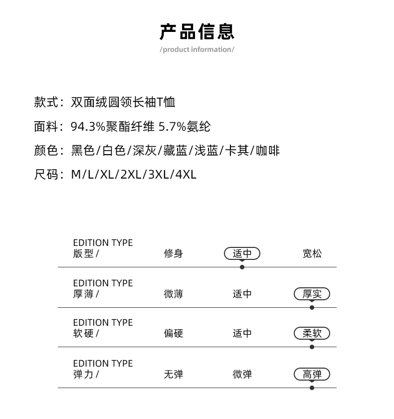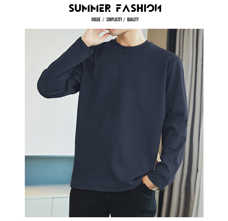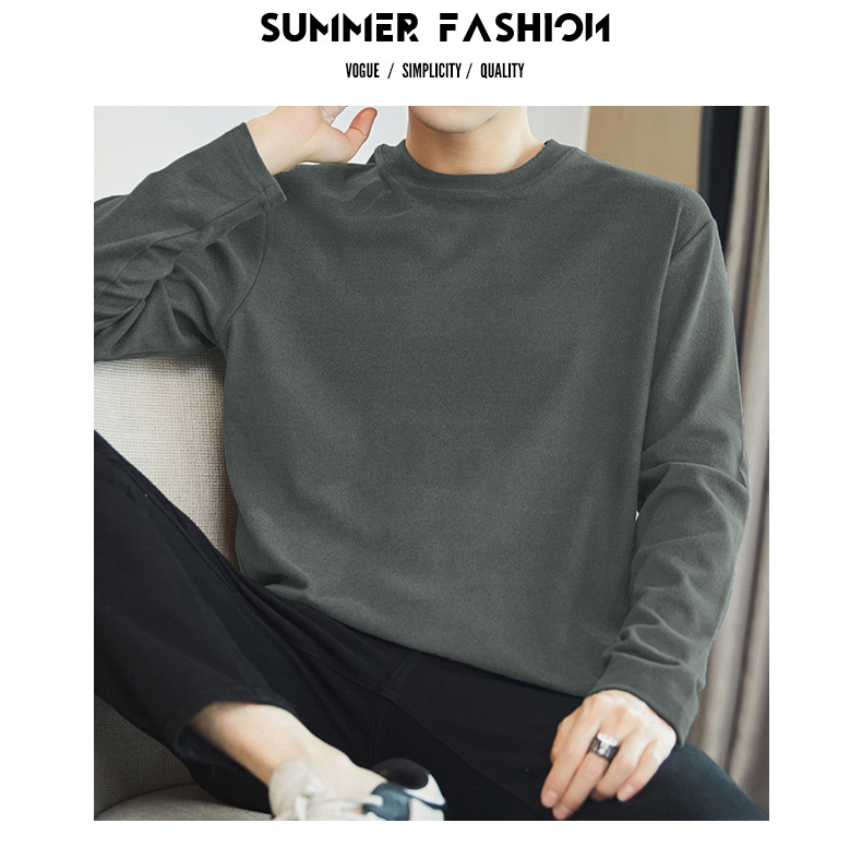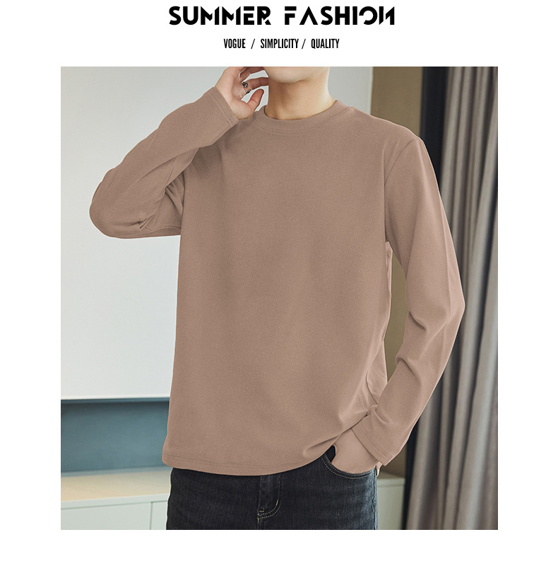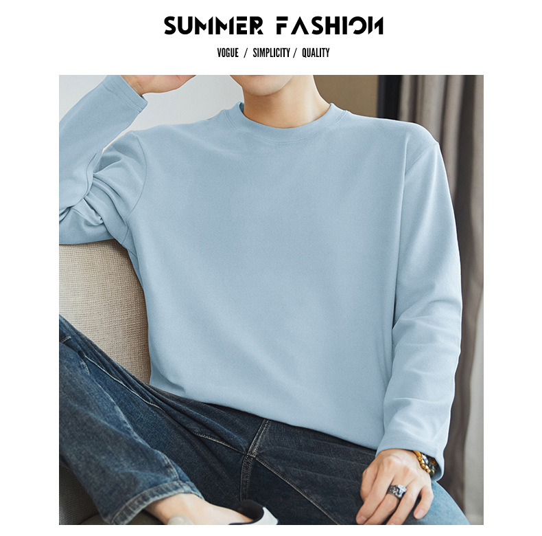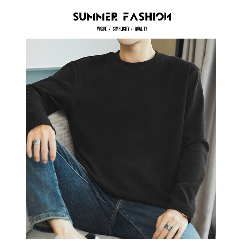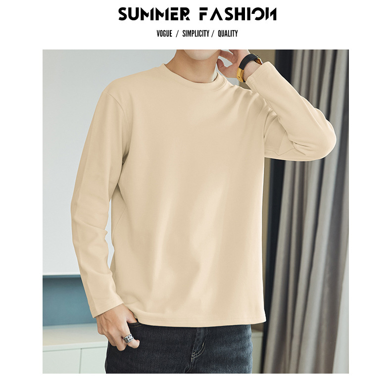 280g 독일 벨벳 바닥 셔츠 남성 긴팔 티셔츠 가을과 겨울 따뜻한 양면 벨벳 크루 넥 티셔츠 단색 가을 셔츠