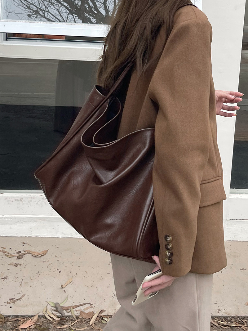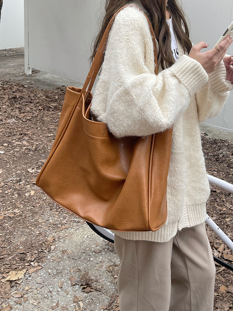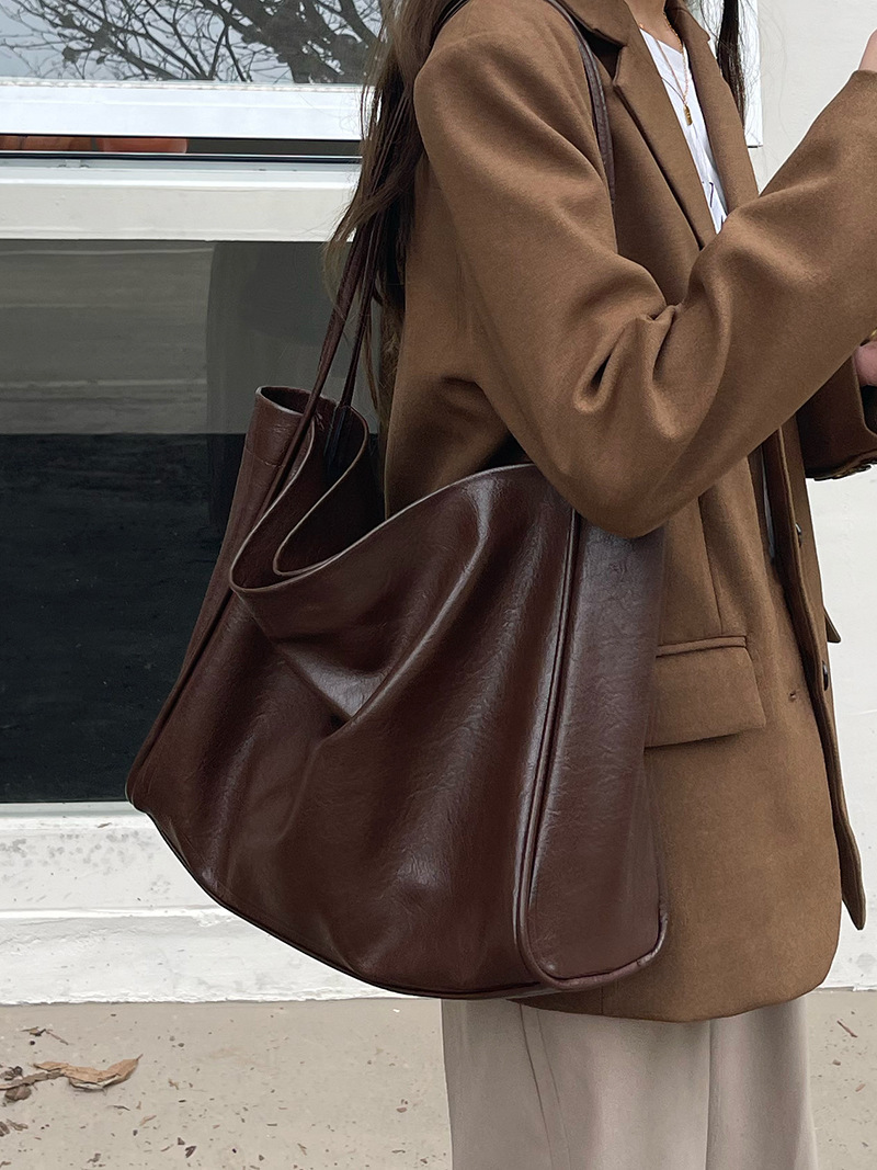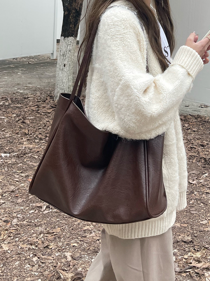 Maillard 대용량 가방 여성의 2025 새로운 캐주얼 섬유 부드러운 가죽 가방 유행 어깨 가방 토트 백