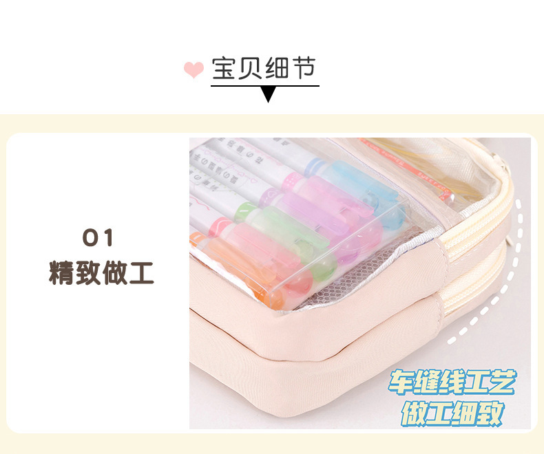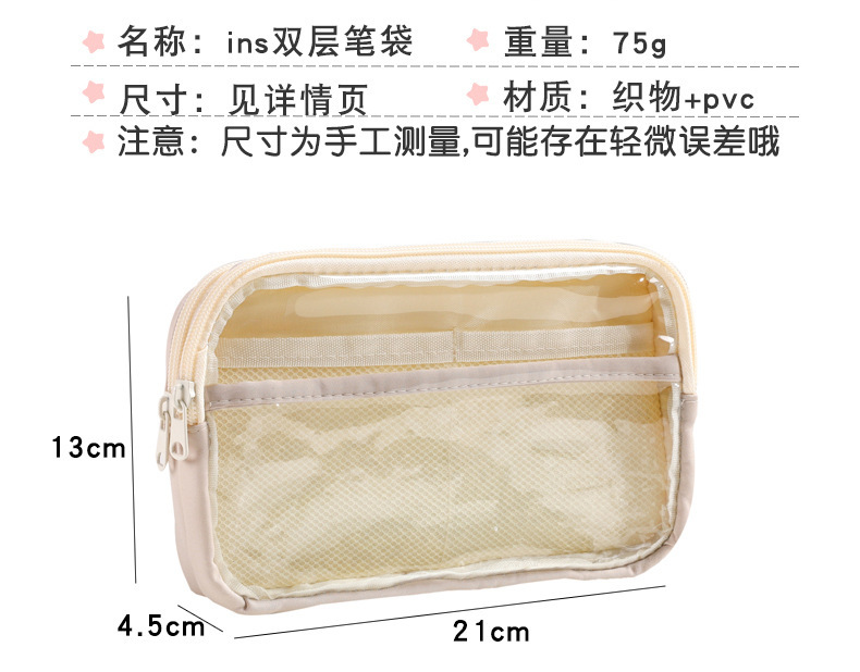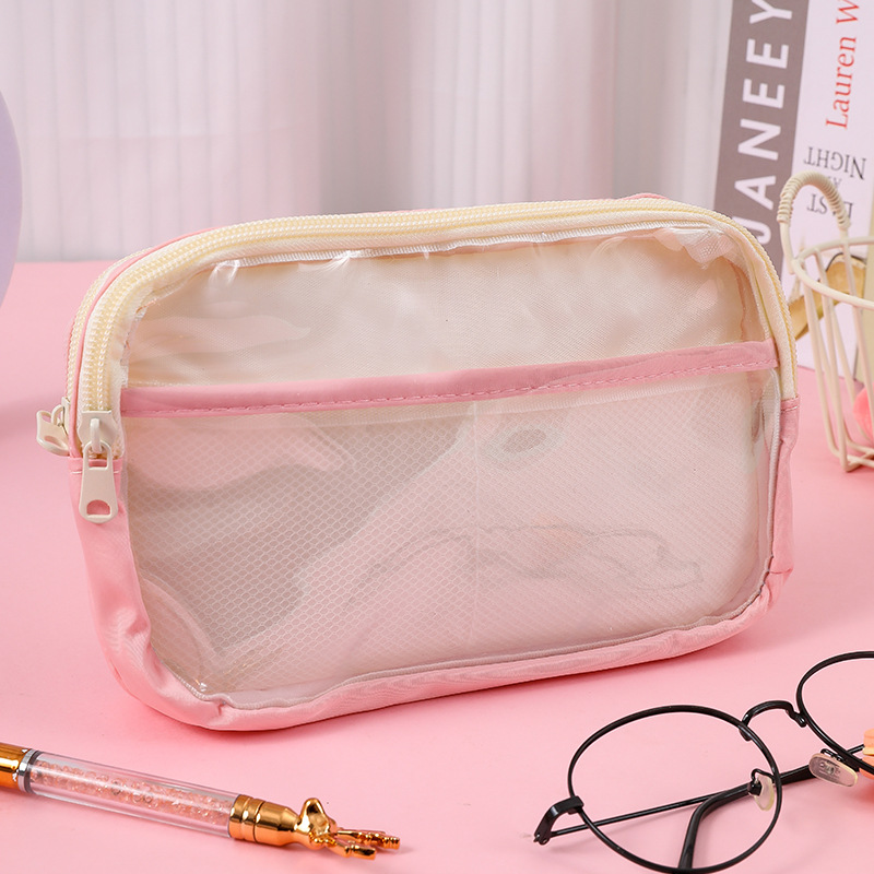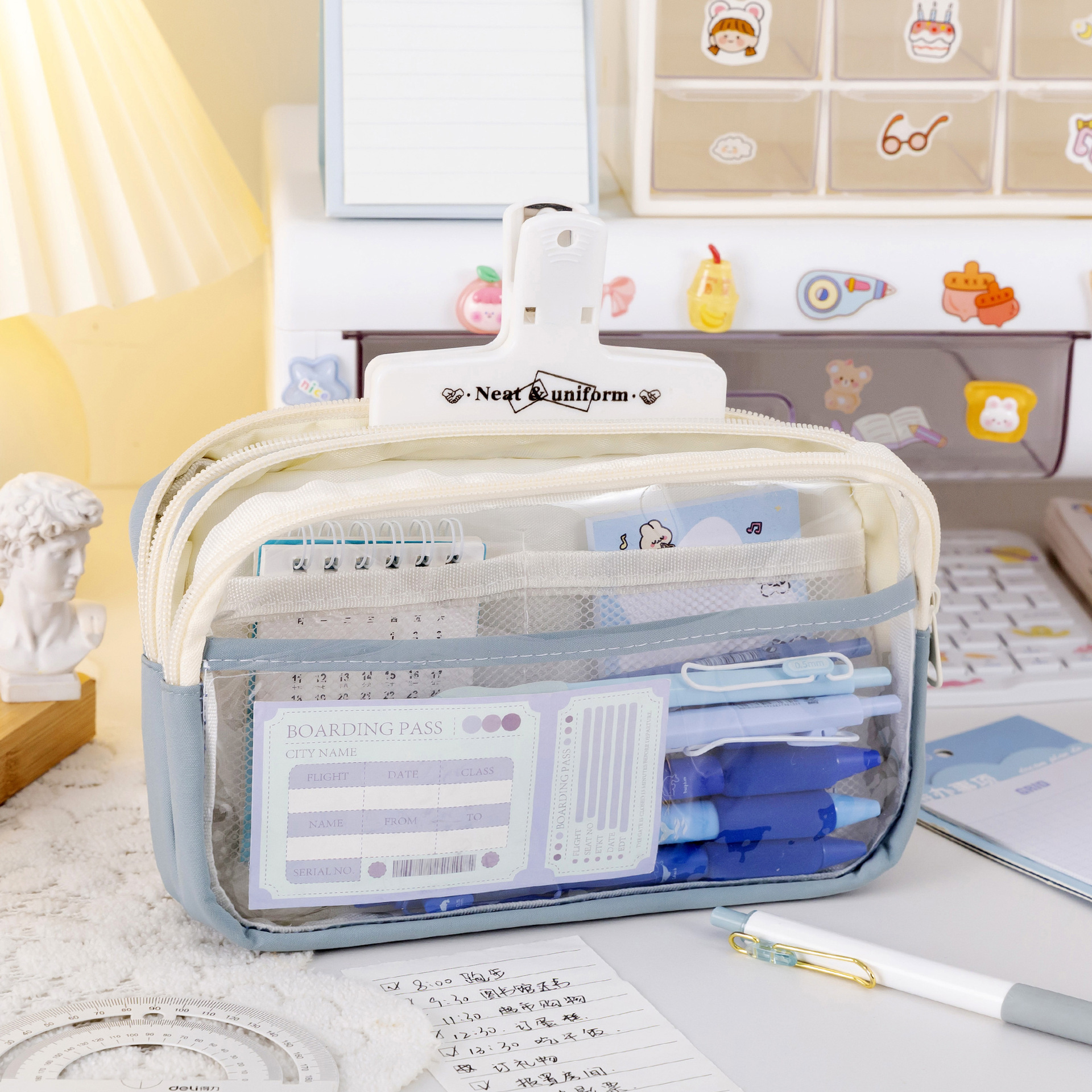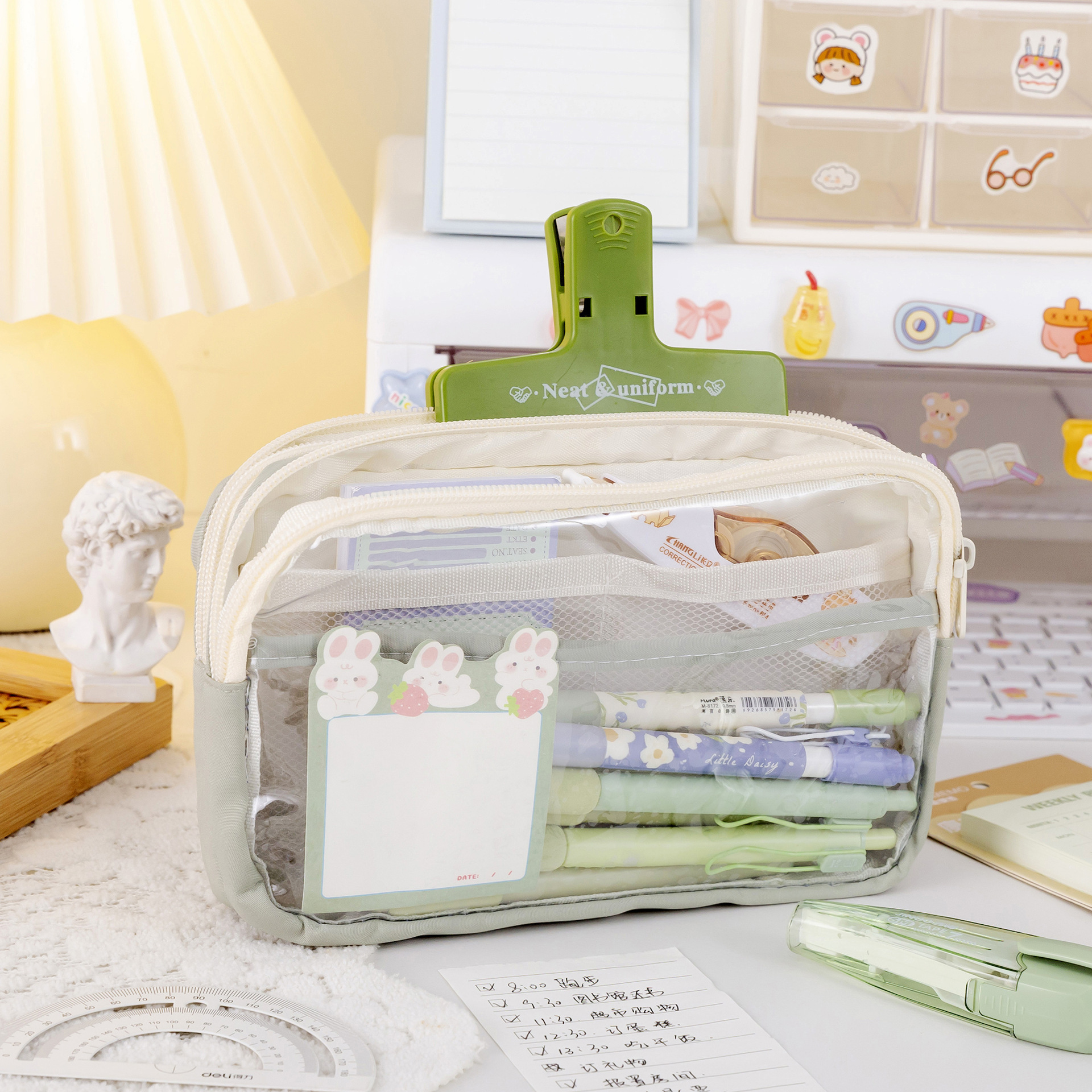 트렌디한 일본식 심플 문구 가방 3단 대용량 투명 필통 도매 여학생 초등학생 연필꽂이 수납