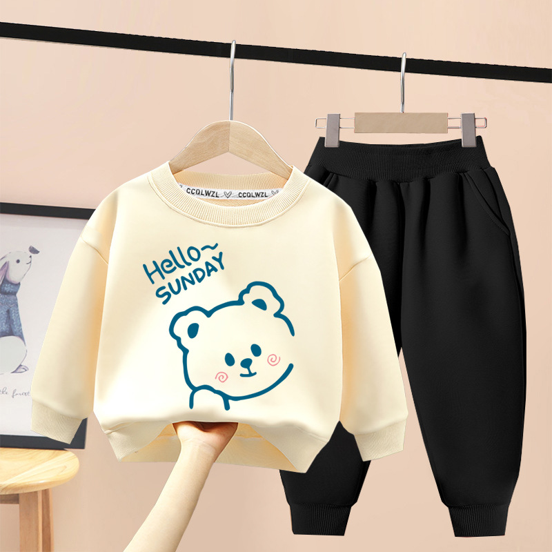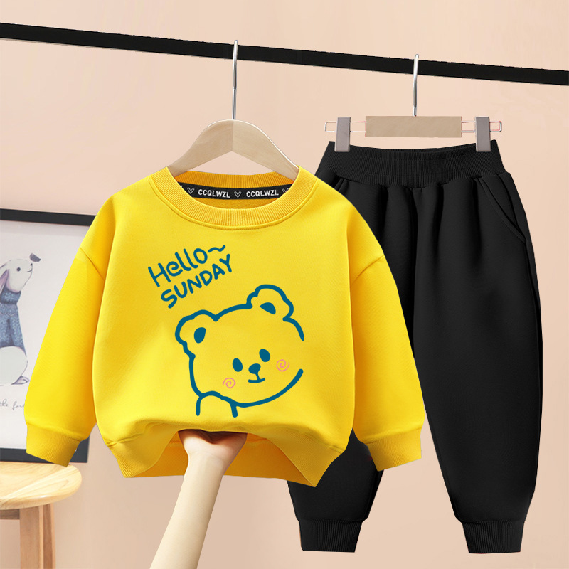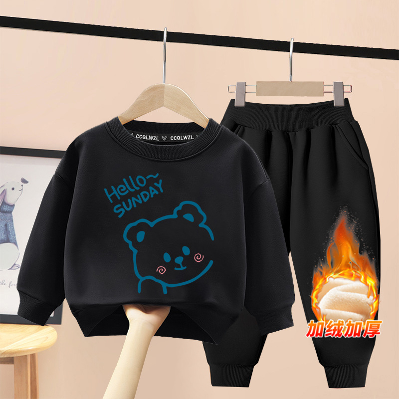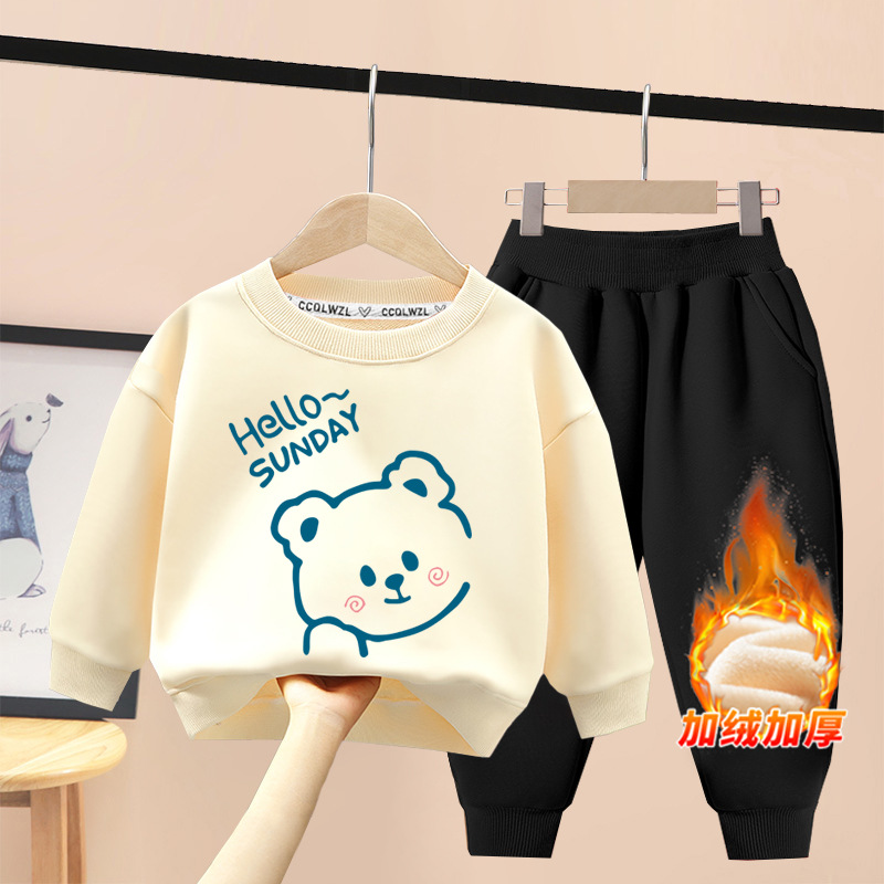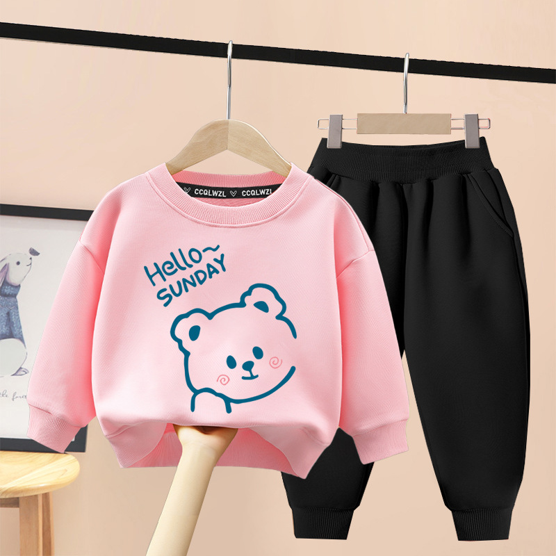 가을과 겨울 2023 세트 여아 스웨터 새로운 만화 서양 스타일 큰 어린이 기모 두꺼운 스포츠 2 종 세트 조수스토어 가기