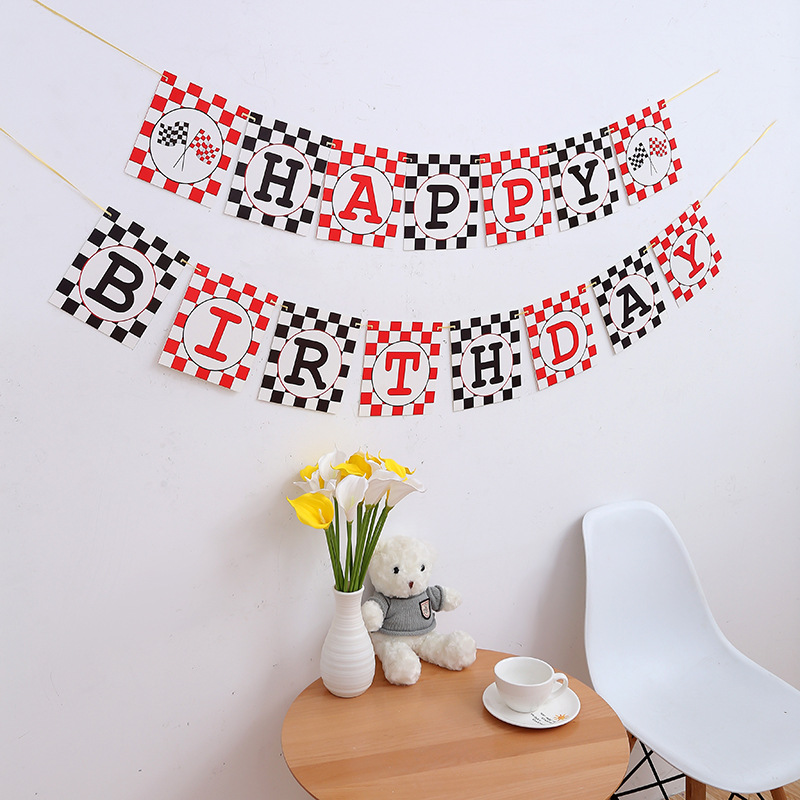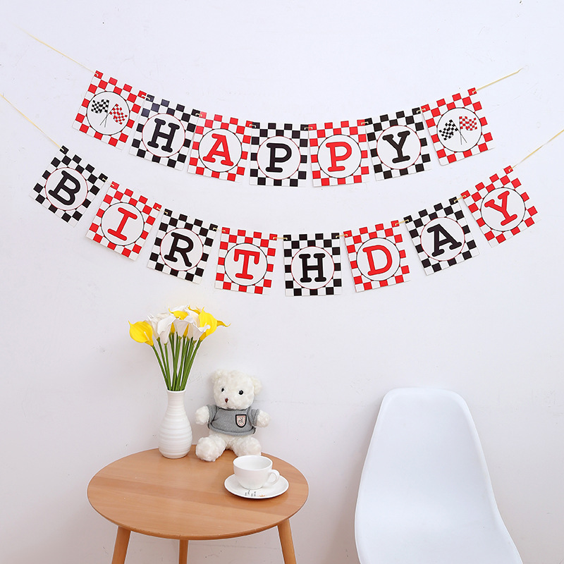 국경 간 경주 테마 생일 깃발 어린이 파티 배너 장식 생일 축하 깃발 도매