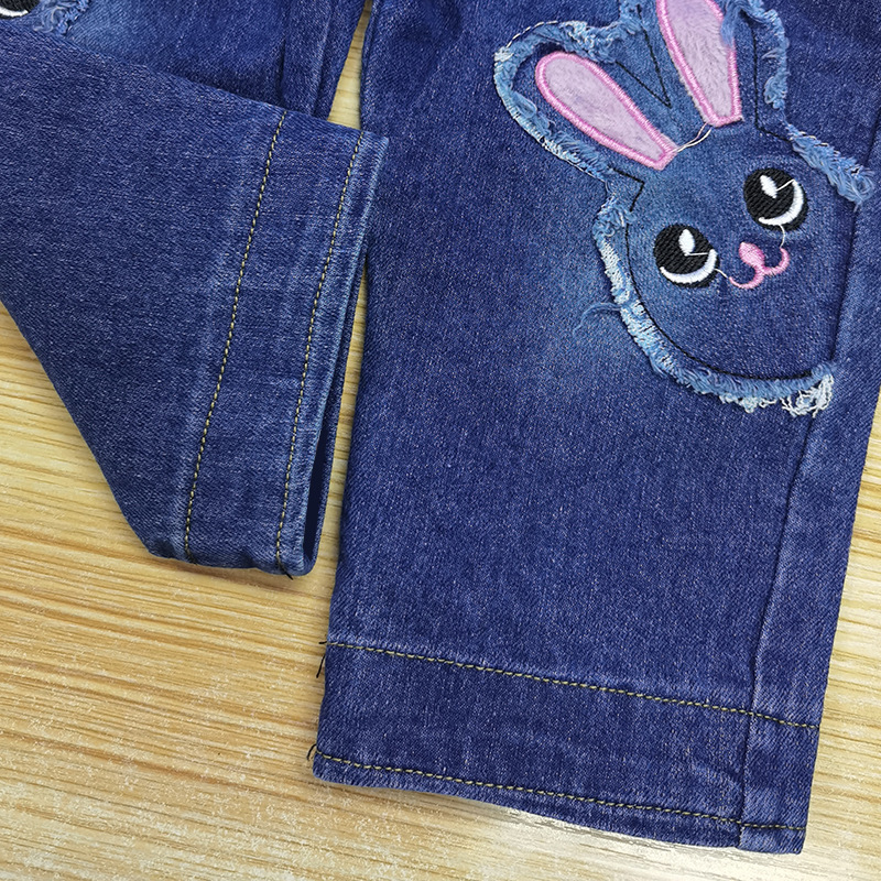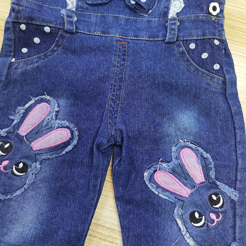 여아 스트랩 바지 봄과 가을 어린이 1-4 세 데님 바지 어린이 토끼 데님 아기 소녀