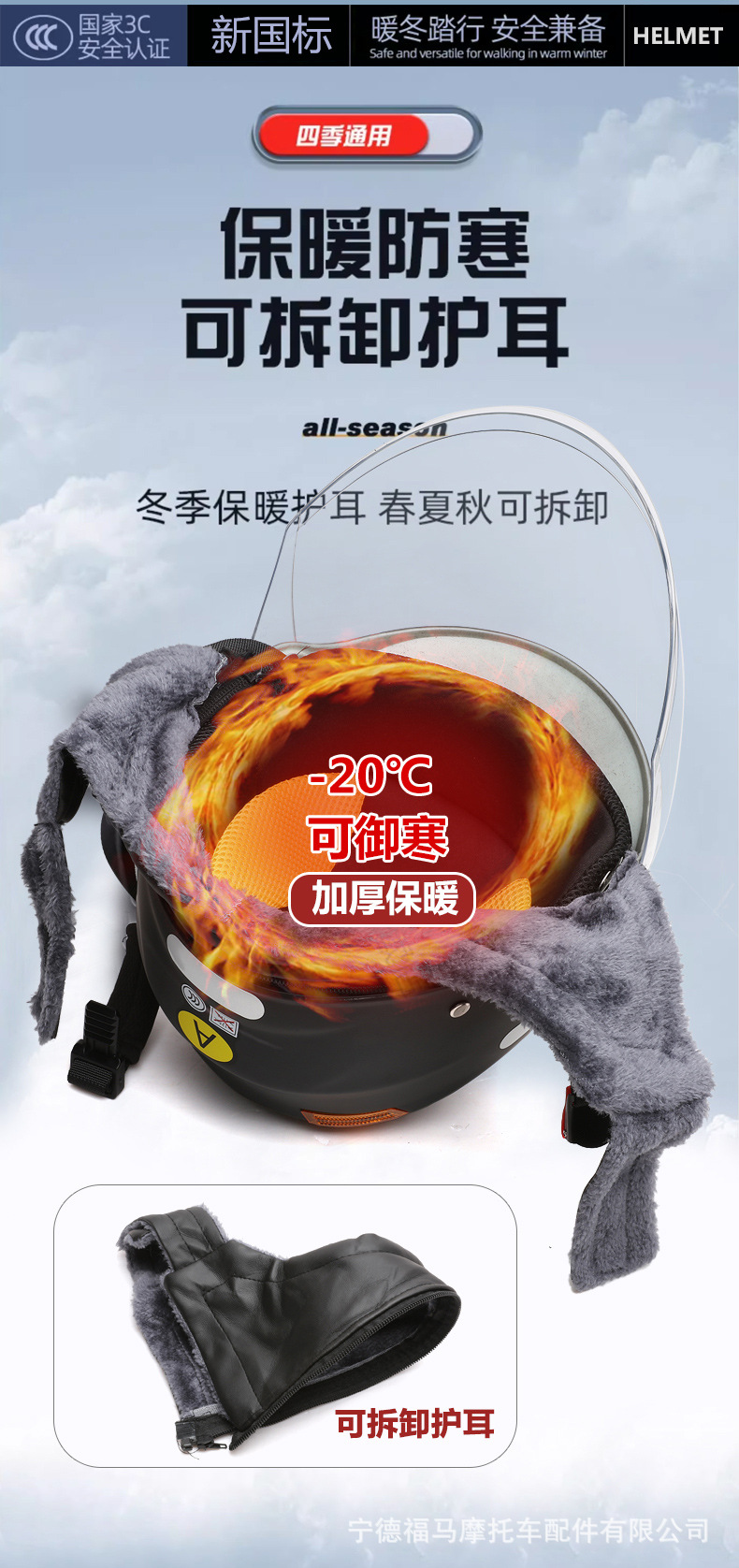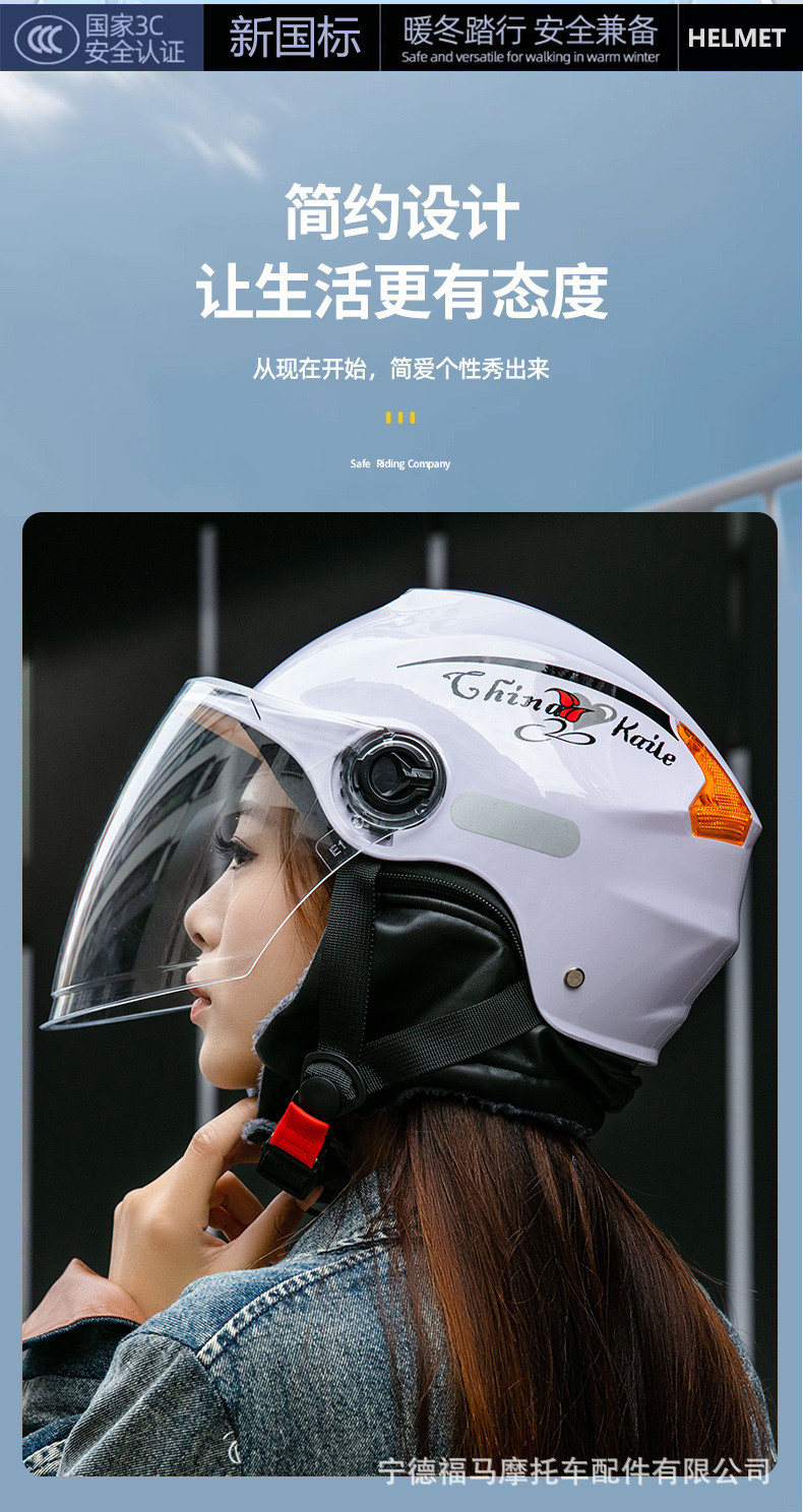 A급 3C 인증 오토바이 전기차 헬멧 사계절용 안전모 가을 겨울 보온 반헬멧 라이딩 충돌 방지