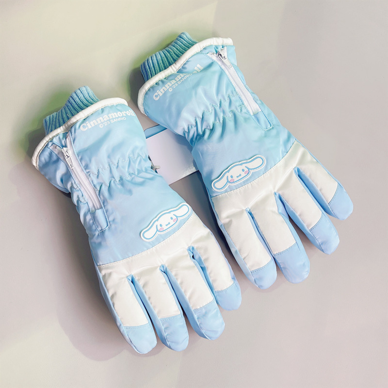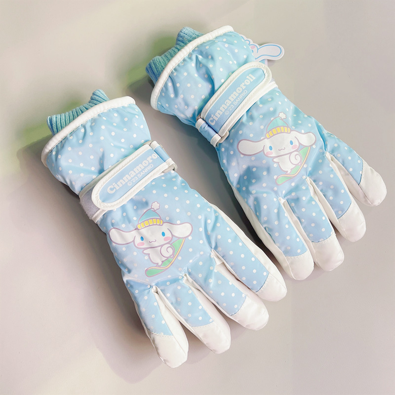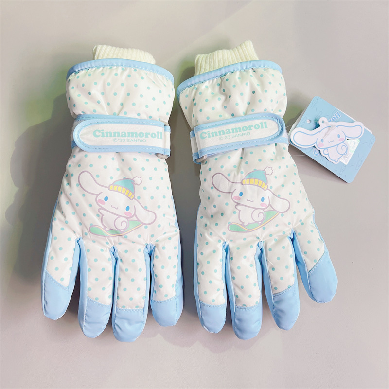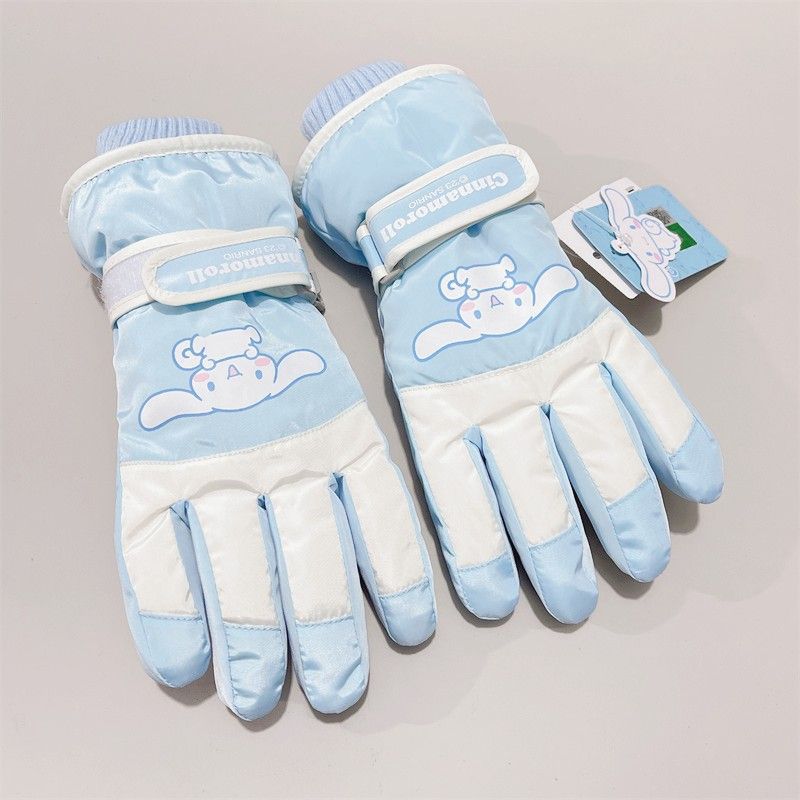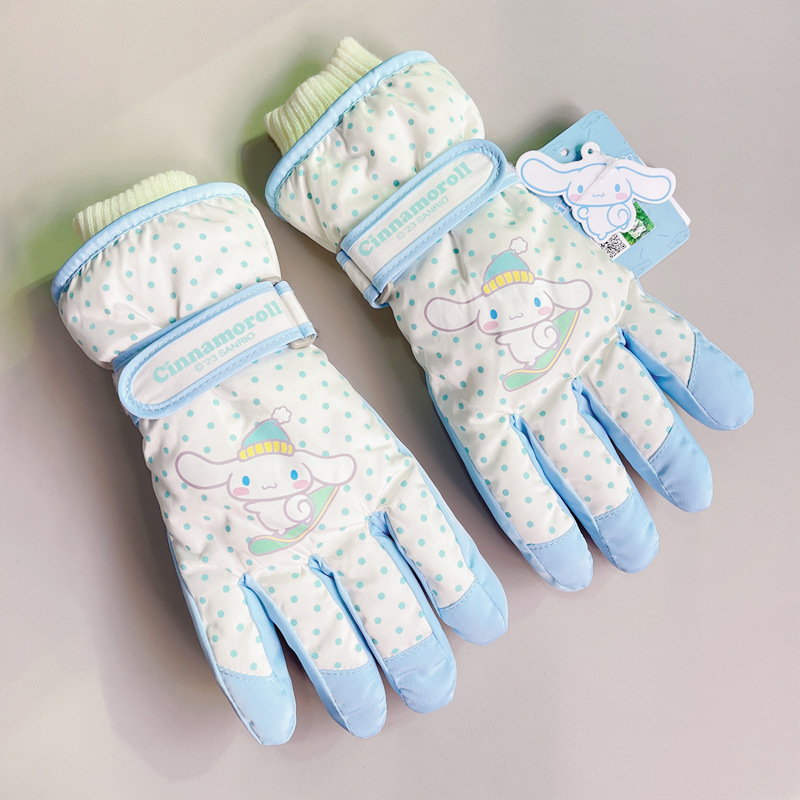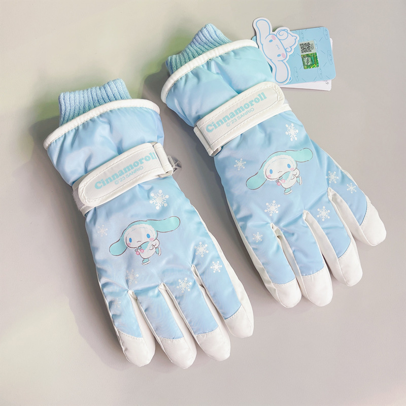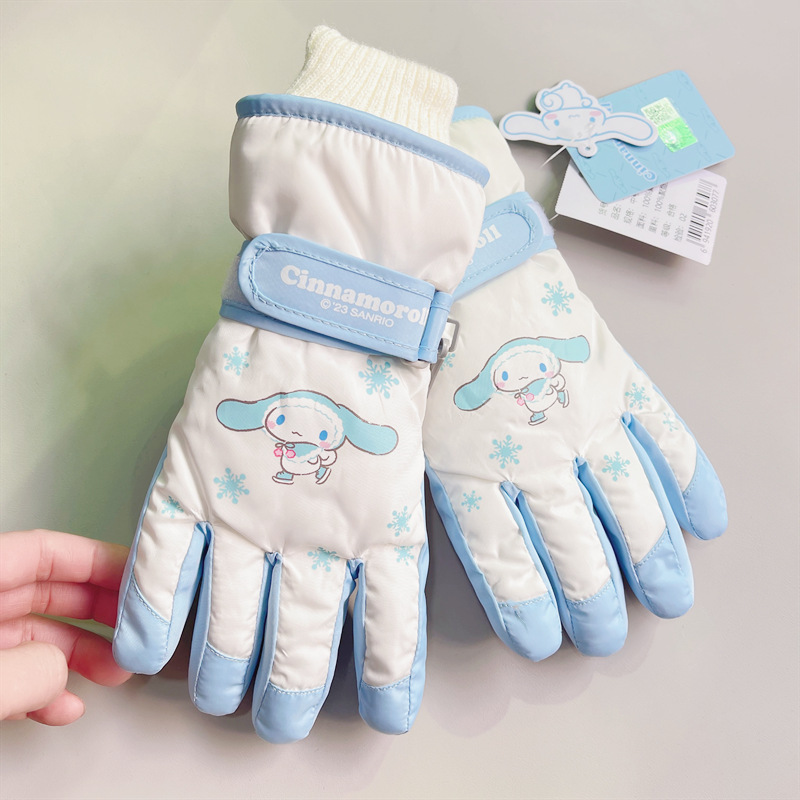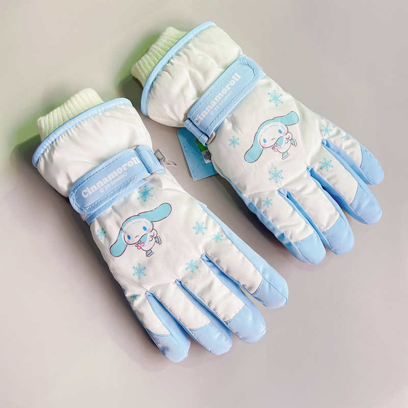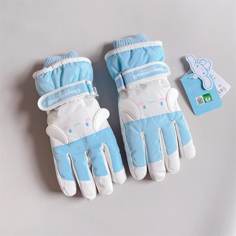 정품 산리오 유구이 개 어린이 스키 장갑 겨울 따뜻한 방한 기모 두꺼운 눈 놀이 방수