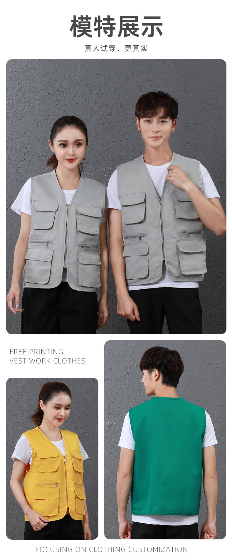 사진 조끼 작업복 남성 멀티 포켓 로고 여름 야외 낚시 기자 광고 도구 조끼 제형