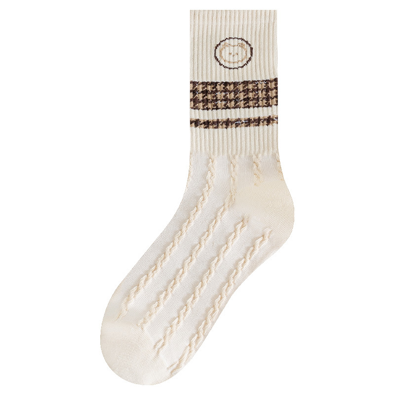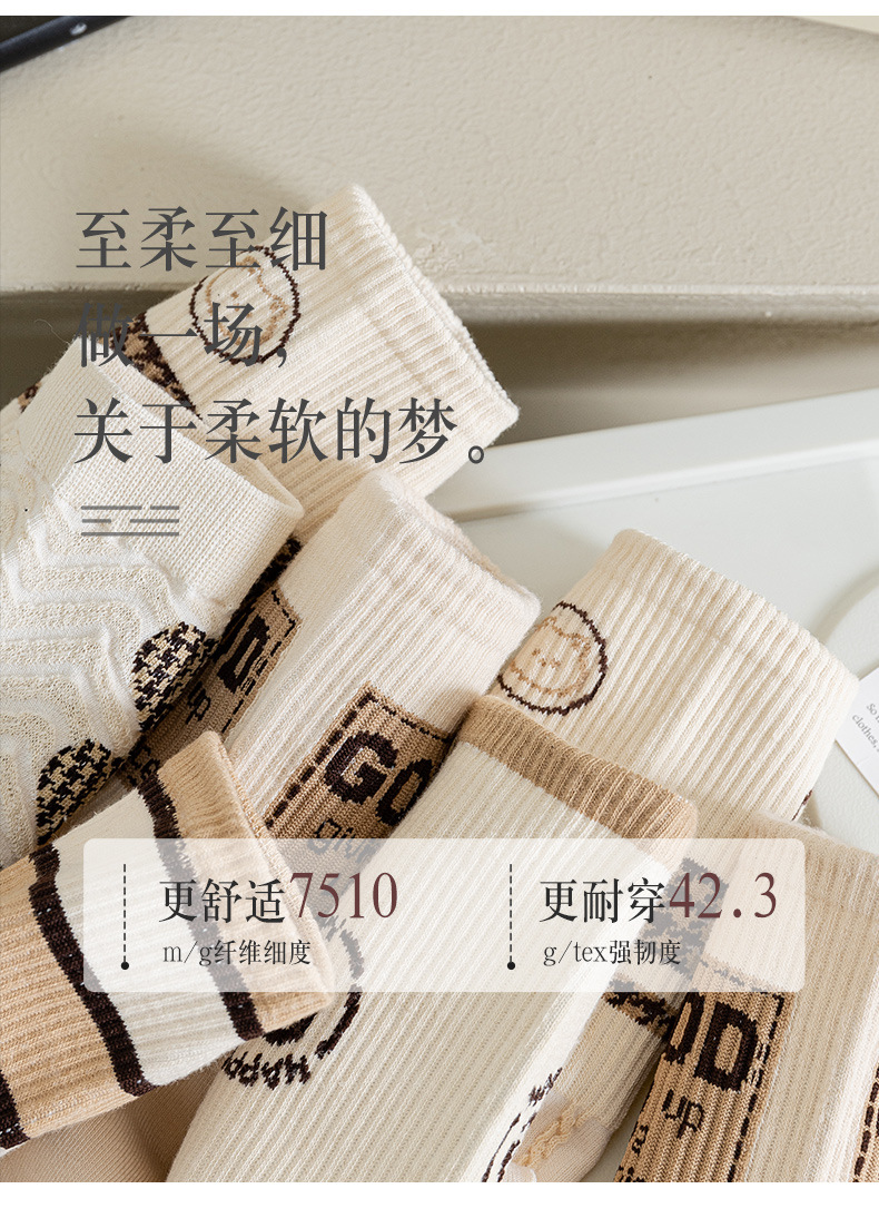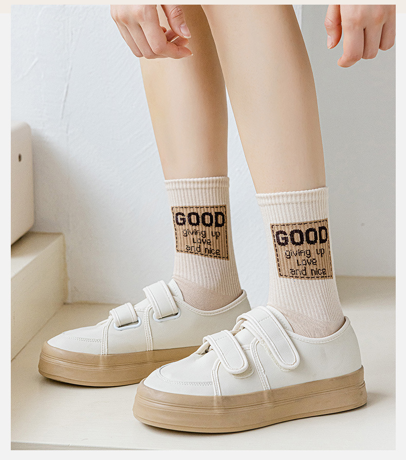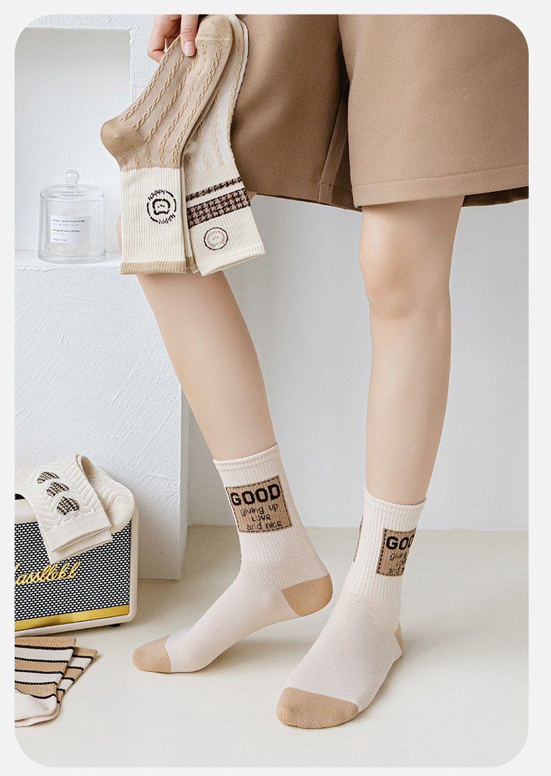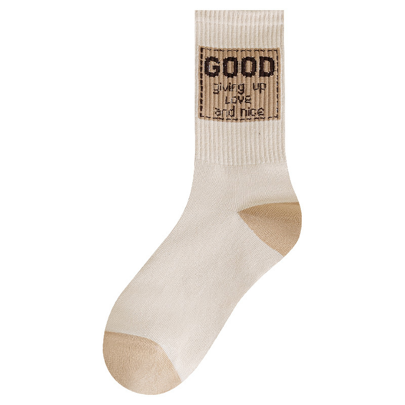 양말 여성용 중간 길이 양말 봄과 가을 땀 흡수 통기성 일본 유행 모든 경기 복고풍 베이지 인터넷 연예인 스포츠 스타킹