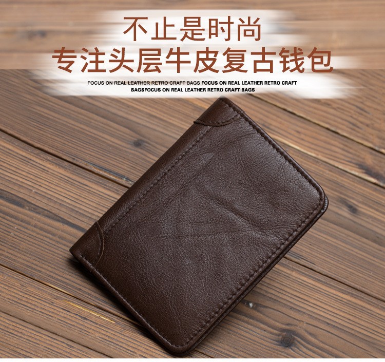 남성용 지갑 크레이프 가죽 신상 천연 가죽 짧은 지갑 최고급 소가죽 다용도 소형 광저우 제조업체 레트로 스타일
