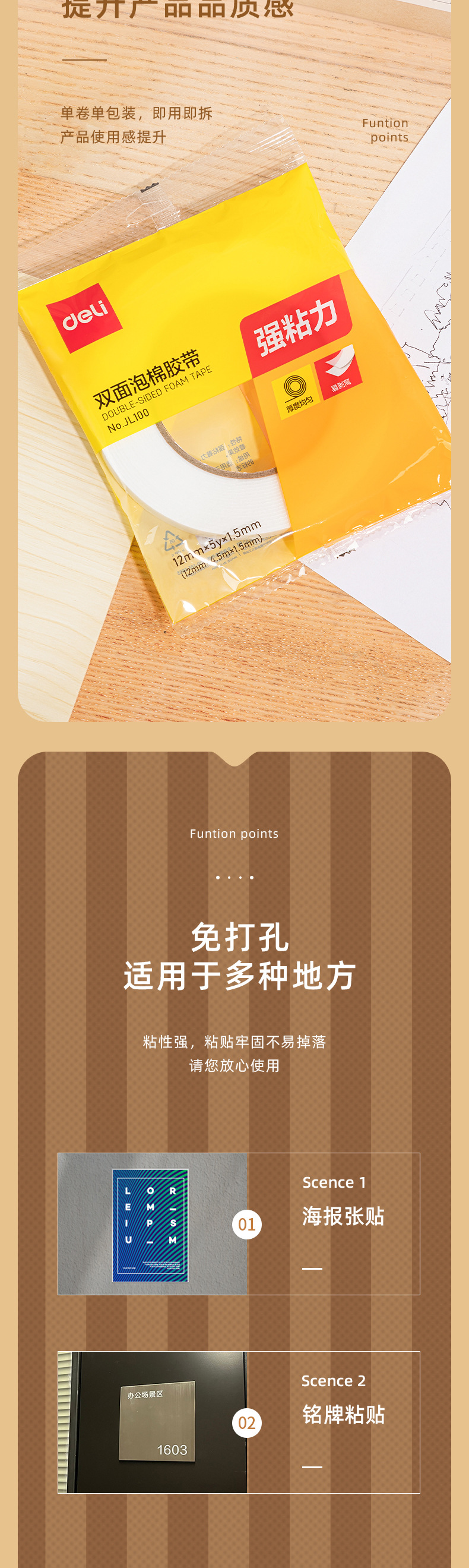 델리 JL100/JL101/JL102/JL103 폼 테이프 양면 테이프 폼 강한 스폰지 테이프스토어 가기