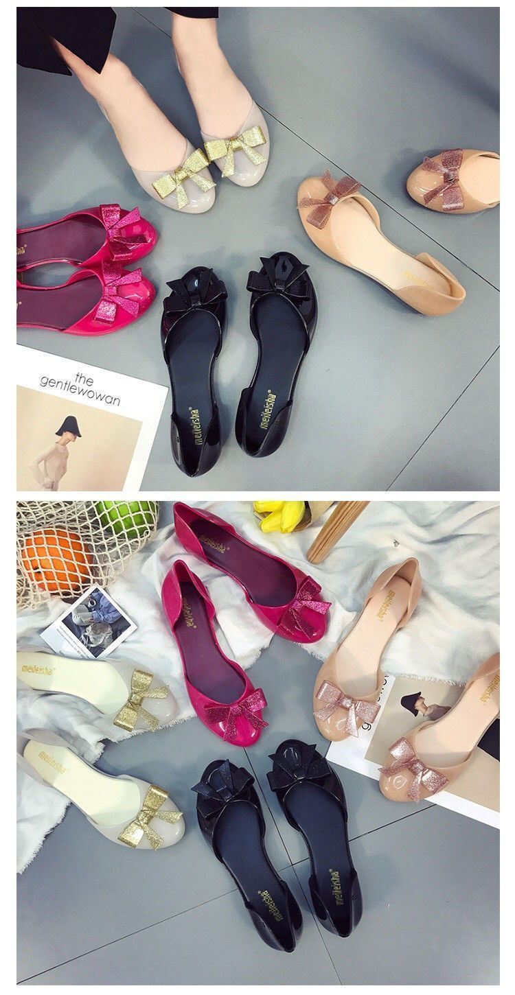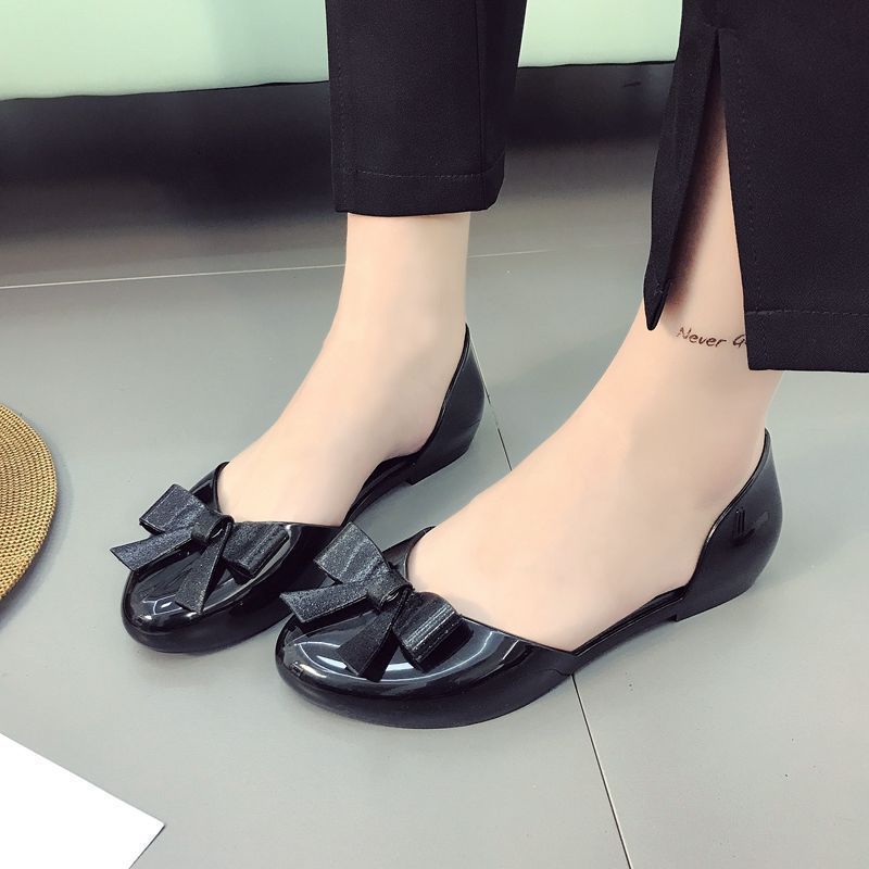 맞춤형 젤리 샌들 여성용 겉옷 새로운 발가락 활 여성 신발 플라스틱 크리스탈 편안한 플랫 미끄럼 방지