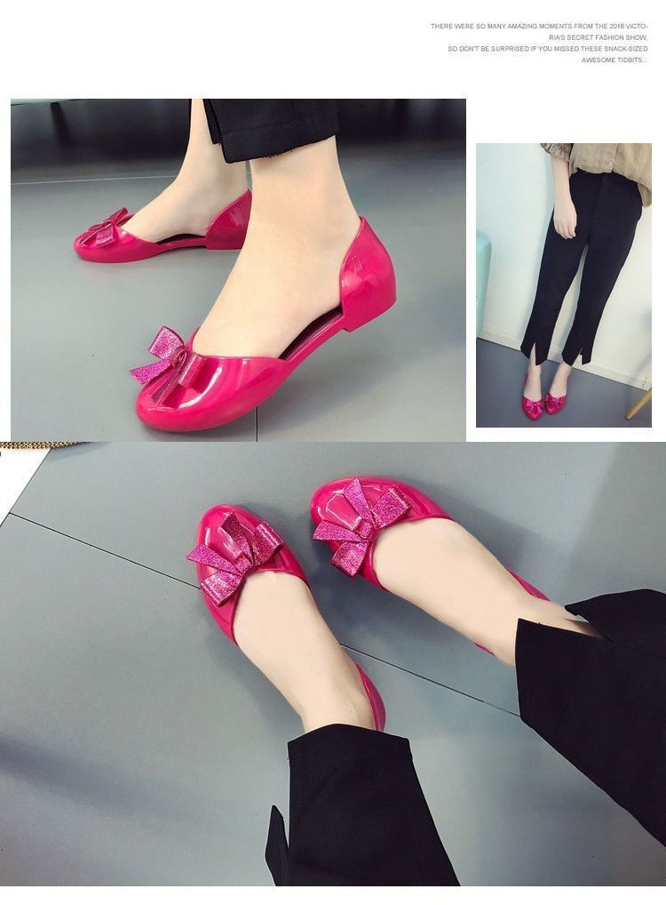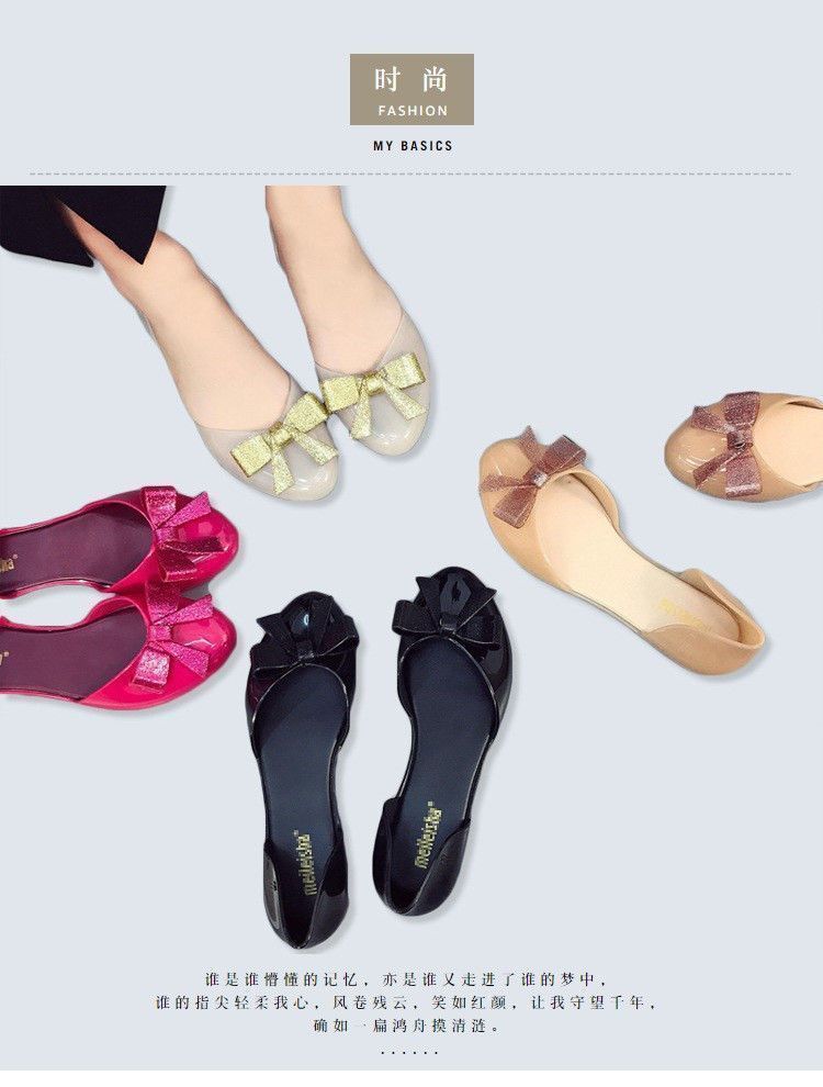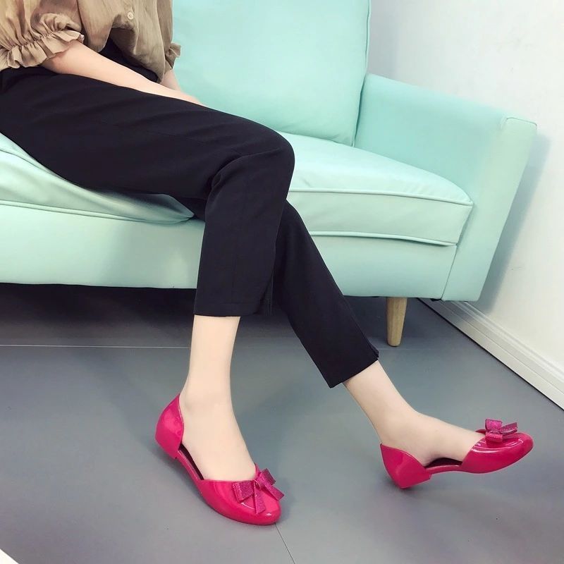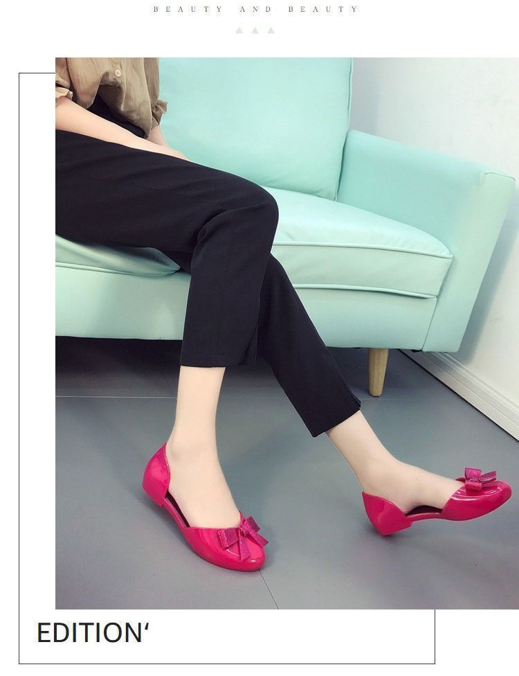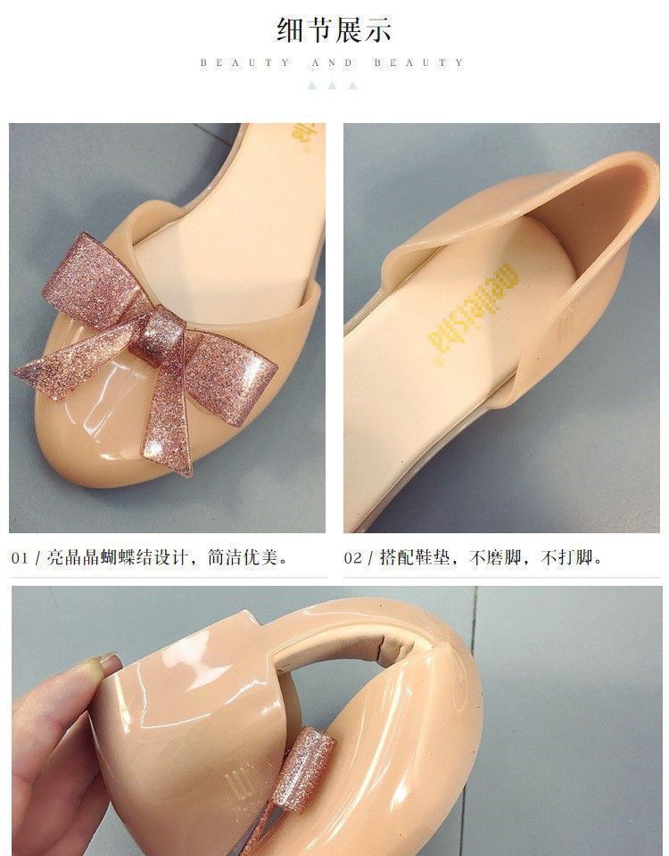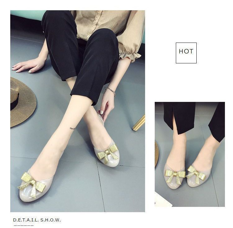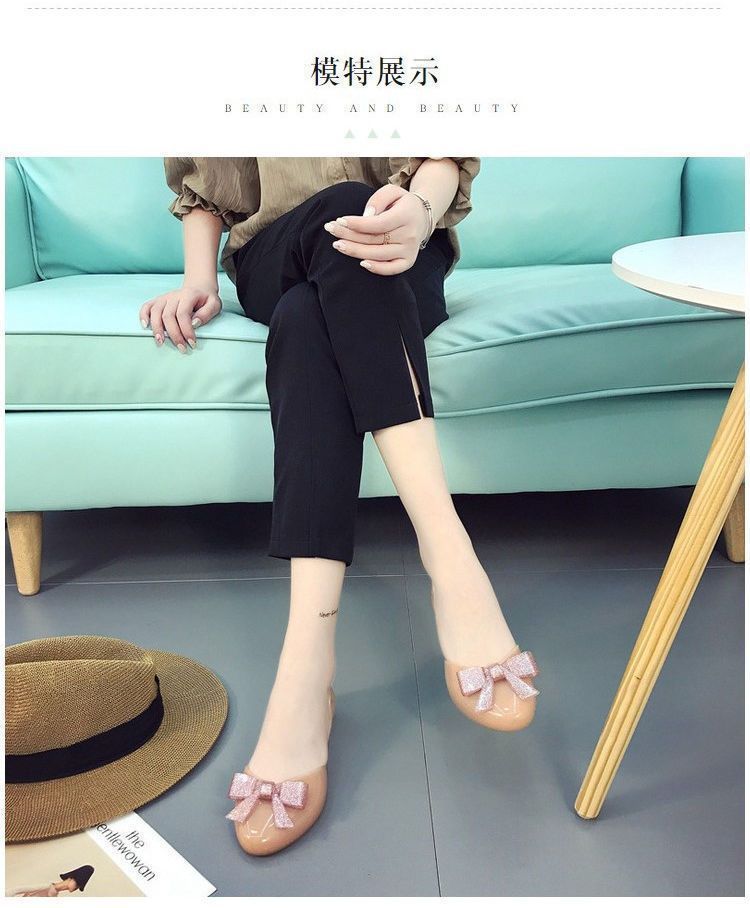 맞춤형 젤리 샌들 여성용 겉옷 새로운 발가락 활 여성 신발 플라스틱 크리스탈 편안한 플랫 미끄럼 방지스토어 가기