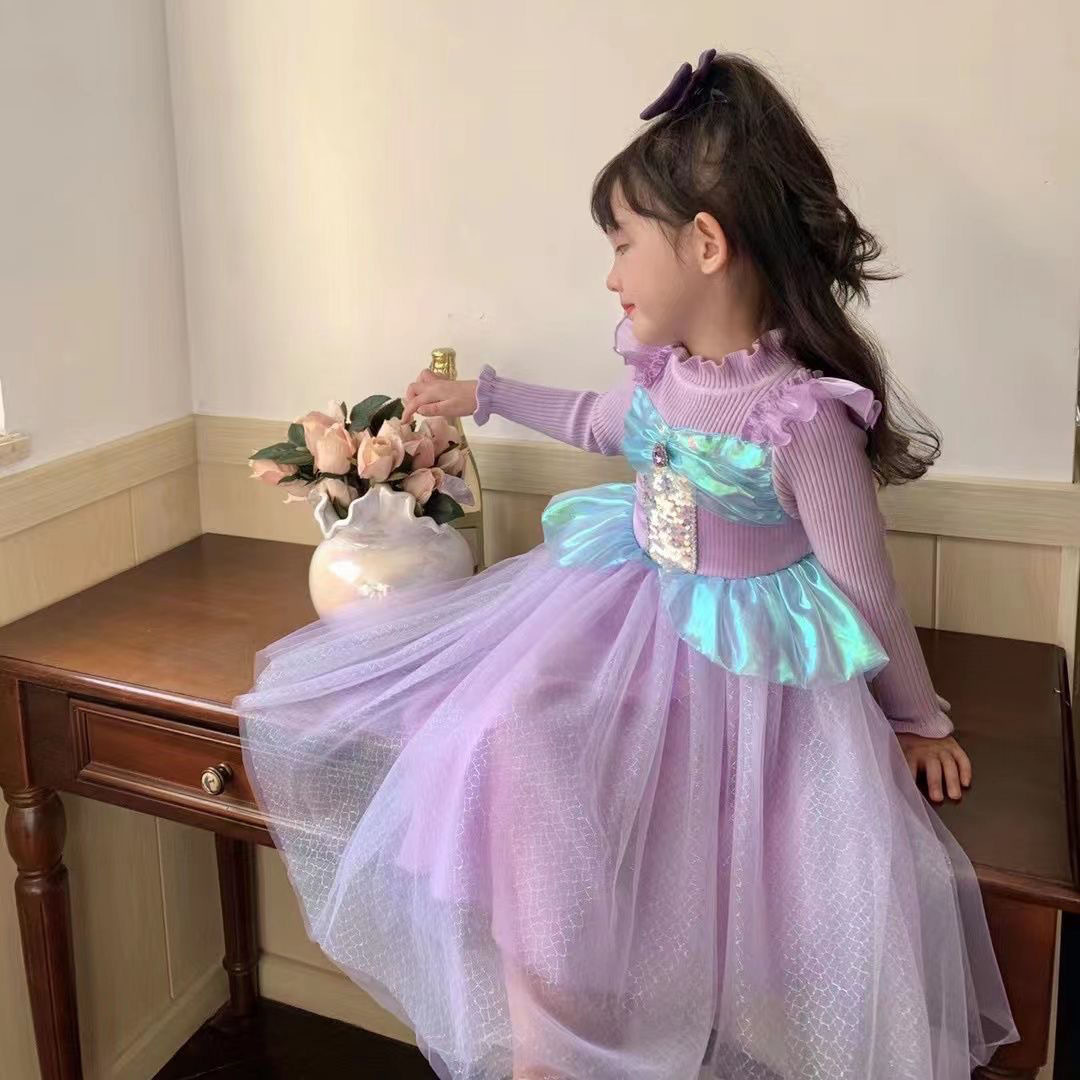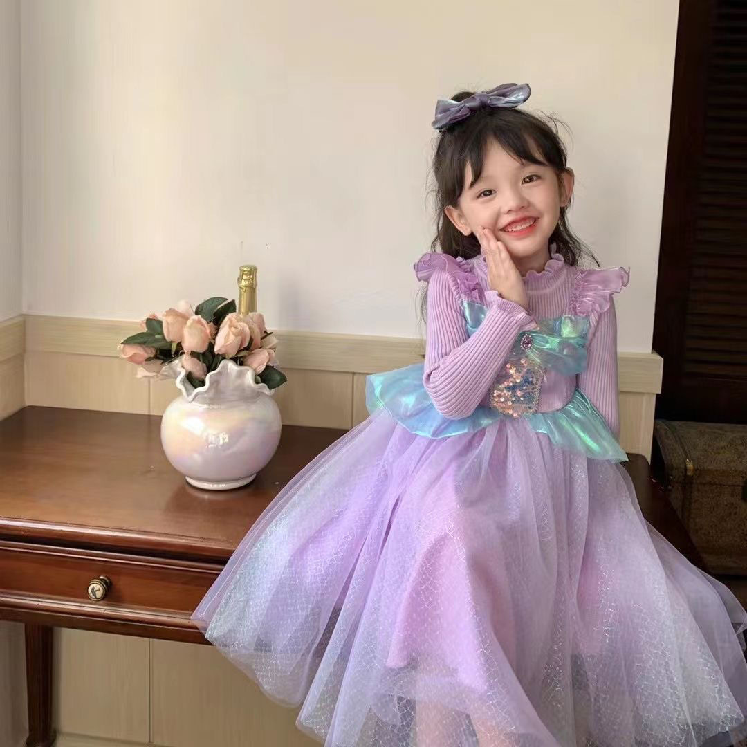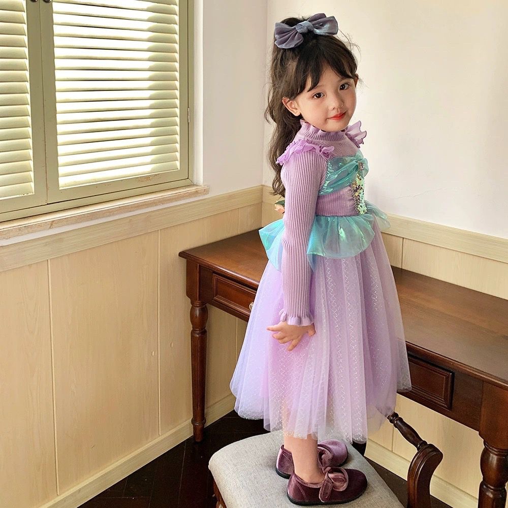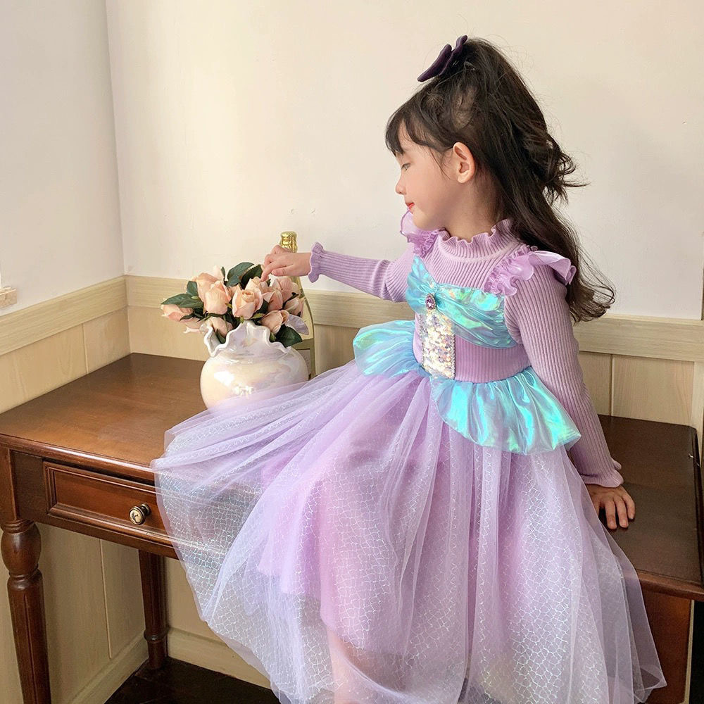 인어 공주 원피스 소녀 가을과 겨울 봄 긴 소매 공주 스타일 퍼프 원사 어린이 니트 스웨터 원피스 원피스스토어 가기