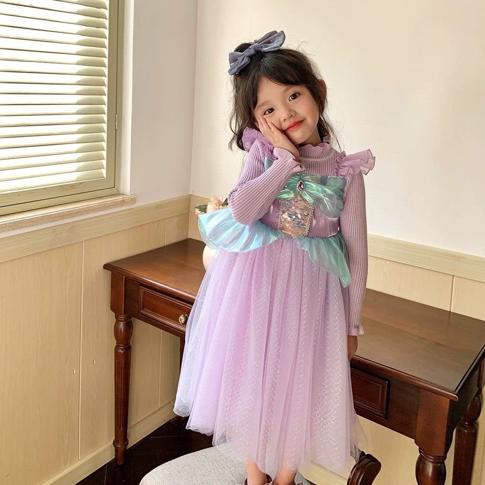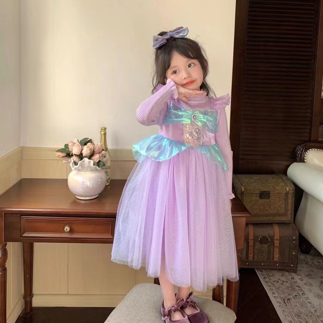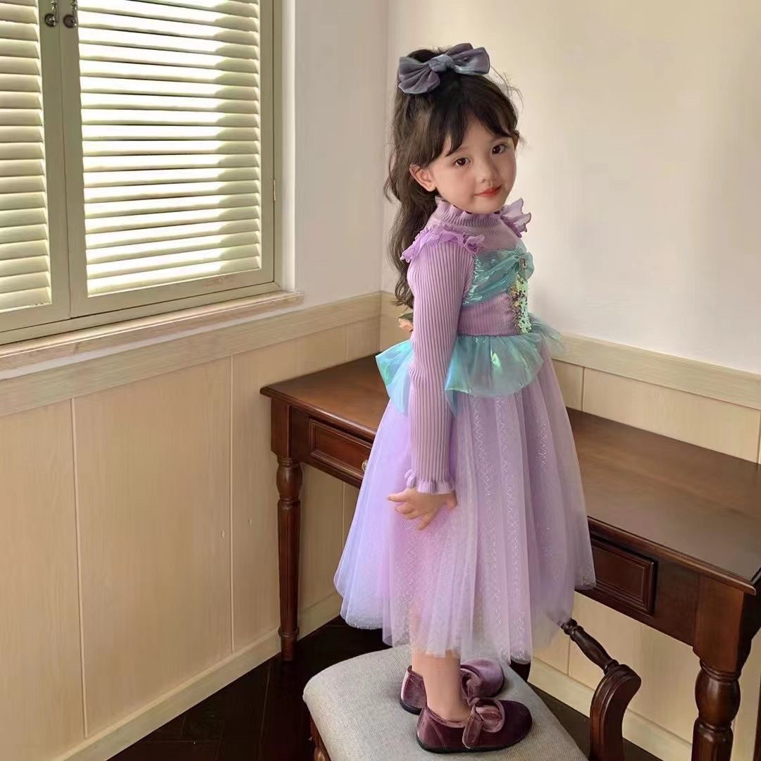 인어 공주 원피스 소녀 가을과 겨울 봄 긴 소매 공주 스타일 퍼프 원사 어린이 니트 스웨터 원피스 원피스스토어 가기