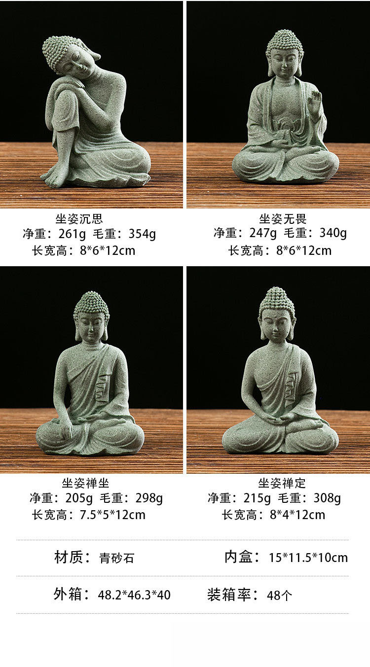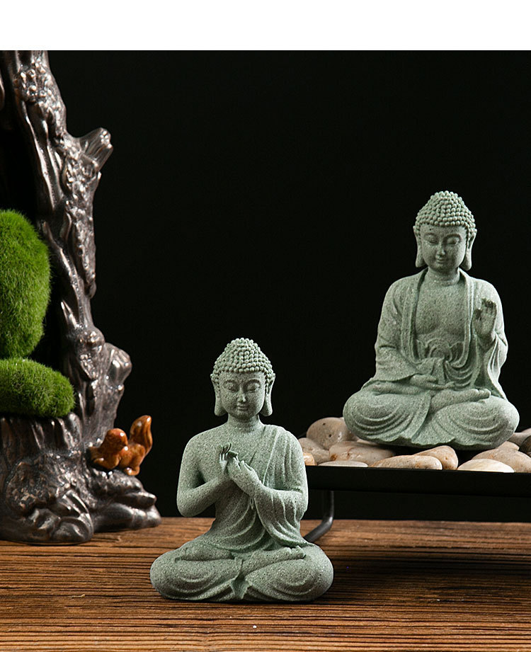 새로운 중국 스타일 녹색 모래 돌 부처 동상 선 장식 선 방 홈 거실 안뜰 베란다 장식 어항 조경스토어 가기