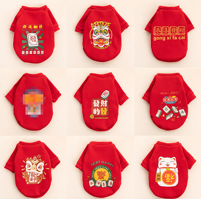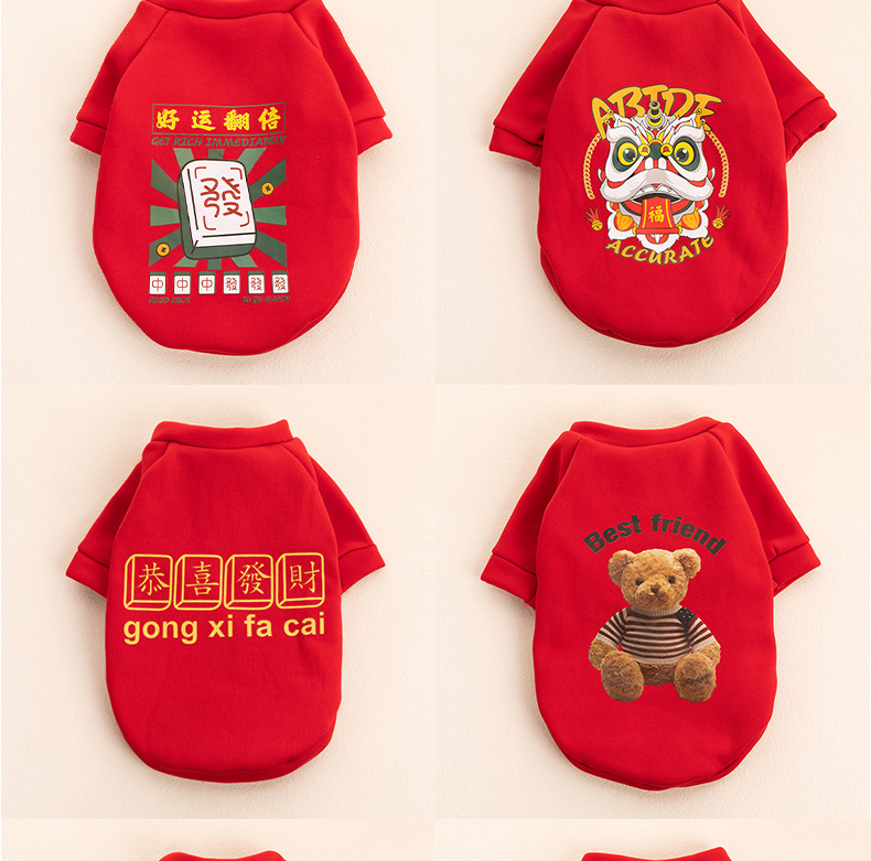 고양이와 개 옷 가을과 겨울 새해 새해 옷 개 애완 동물 옷 따뜻한 개 새끼 고양이 축제 귀여운 레드스토어 가기