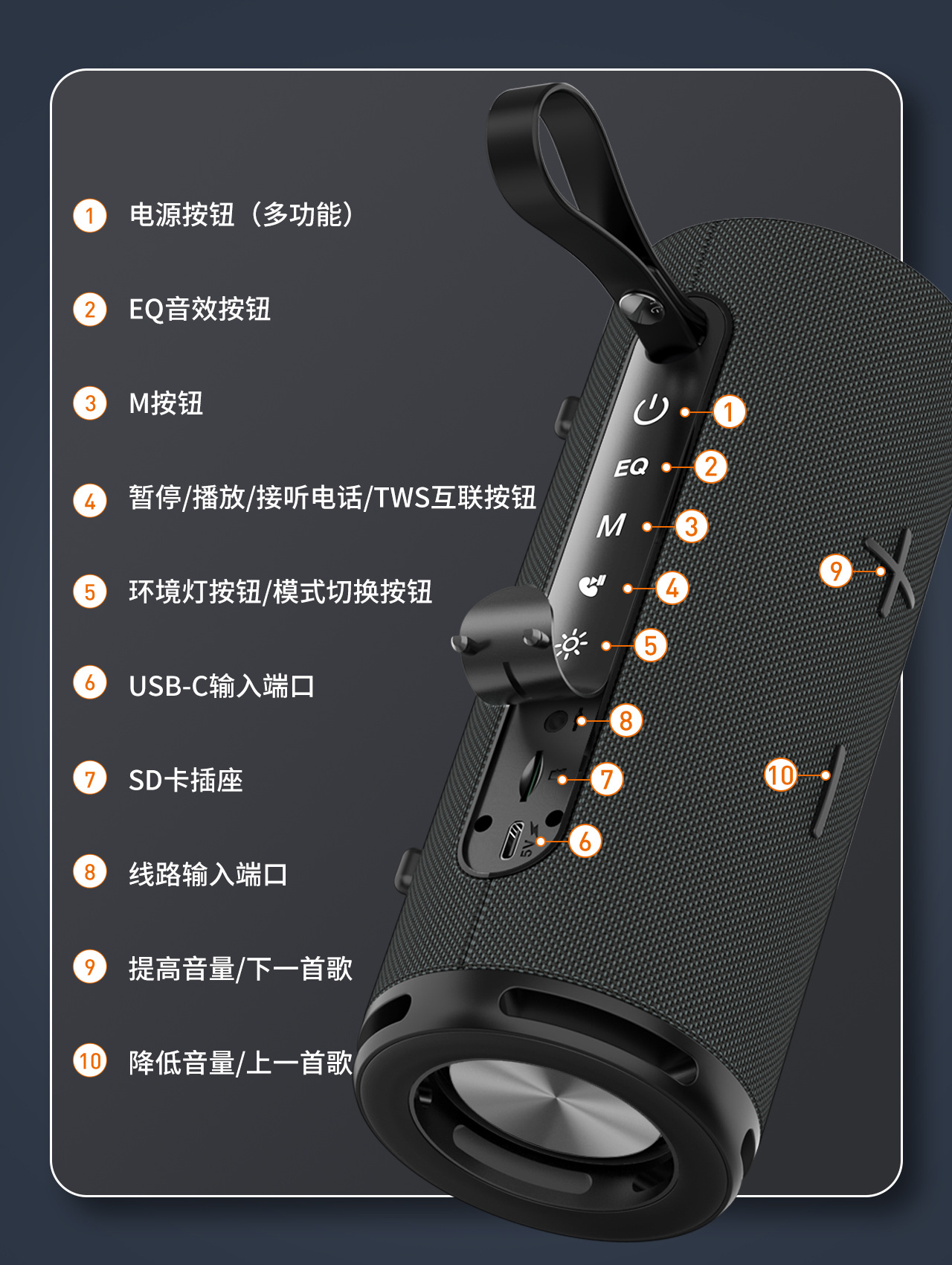 LDNIO 블루투스 스피커 서브우퍼 소형 스피커 선물용 가정용 야외 휴대용 블루투스 스피커 분위기 조명 포함