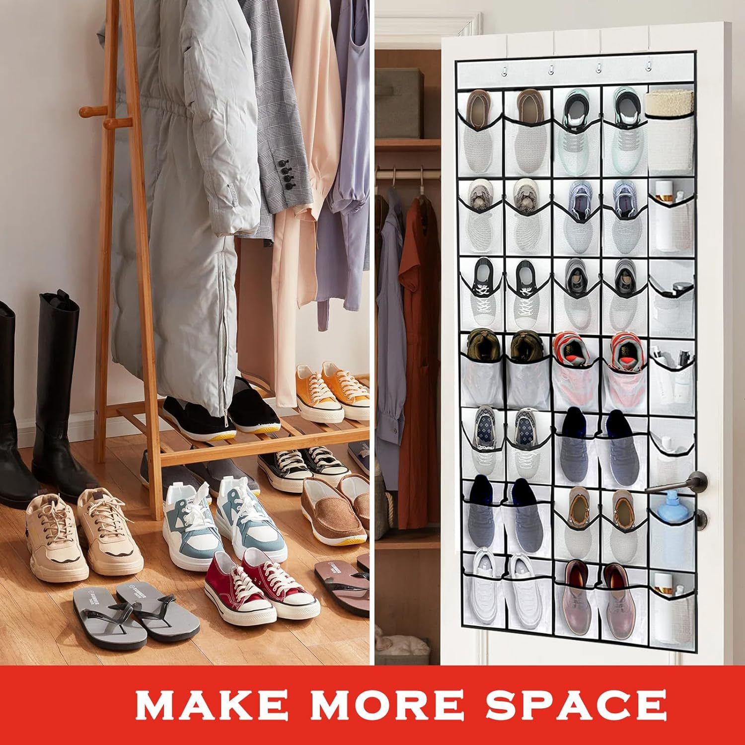 坚固且持久:门上鞋收纳架适用于玄关卧室食品柜,采用加厚透气无纺布制成,配有 4 个坚固的挂钩和 40 个超大网眼口袋,专为长期使用而设计,可以折叠非常小,便于旅行。 每个门上的挂鞋收纳架可承重 40 磅。 4 个挂钩适合厚度达 1.35 英寸-1.85 英寸的门,方便挂在门上和关上门。