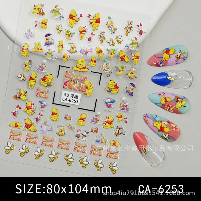 어린이 재미있는 만화 5d 네일 아트 스티커 높은 색상 가치 귀여운 작은 동물 DIY 낙서 구호 네일 스테레오 스티커스토어 가기