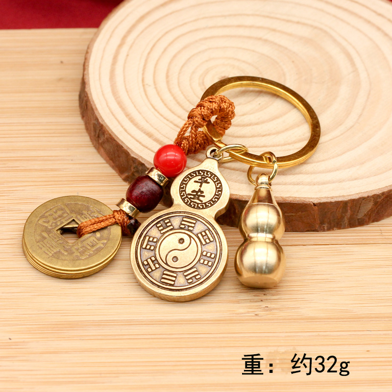 순수 황동 Baifu Ping An Tai Chi Bagua 작은 조롱박 열쇠 고리 펜던트 순수 구리 소형 펜던트 펜던트 제조 업체 도매스토어 가기