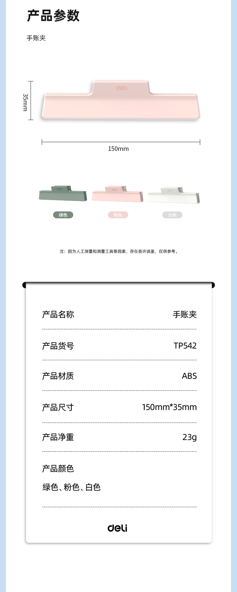 델리 TP542 핸드 계정 클립 와이드 입 클립 테스트 종이 홀더 파일 분류 구성 클립 북 클립 노트 클립