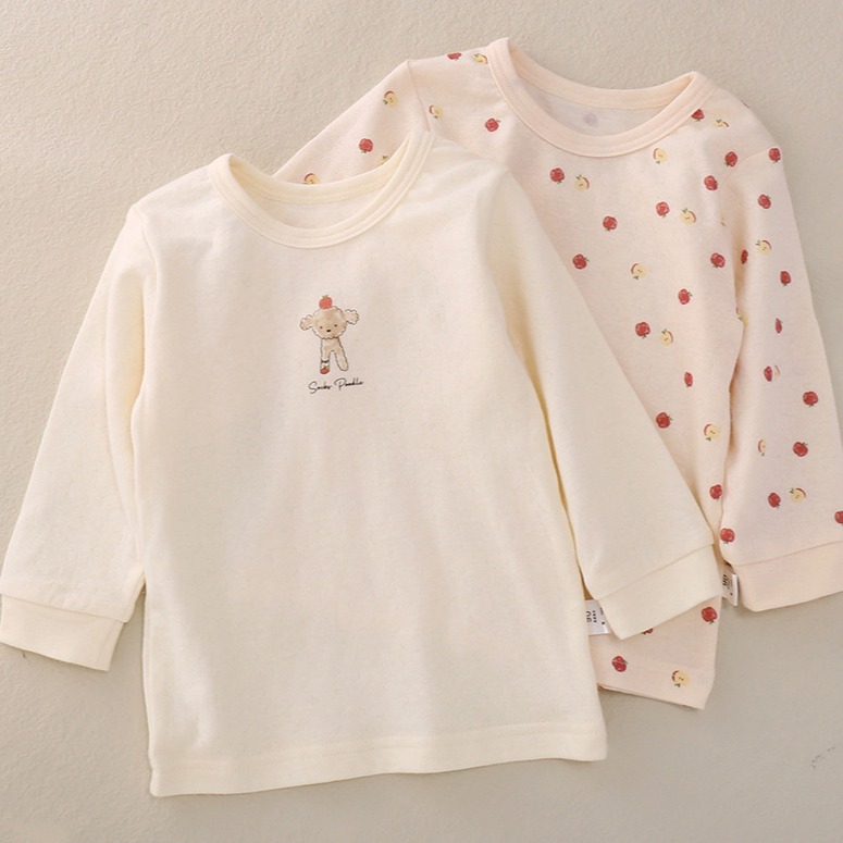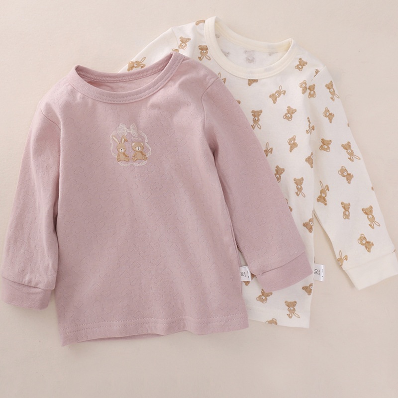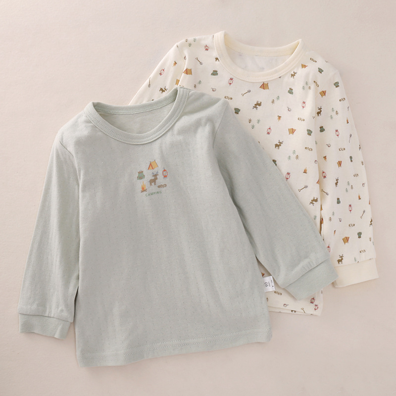일본 봄 가을과 겨울 어린이 긴팔 크루넥베이스 셔츠 순면 클래스 남아 여아 아기의 따뜻한 가을 속옷