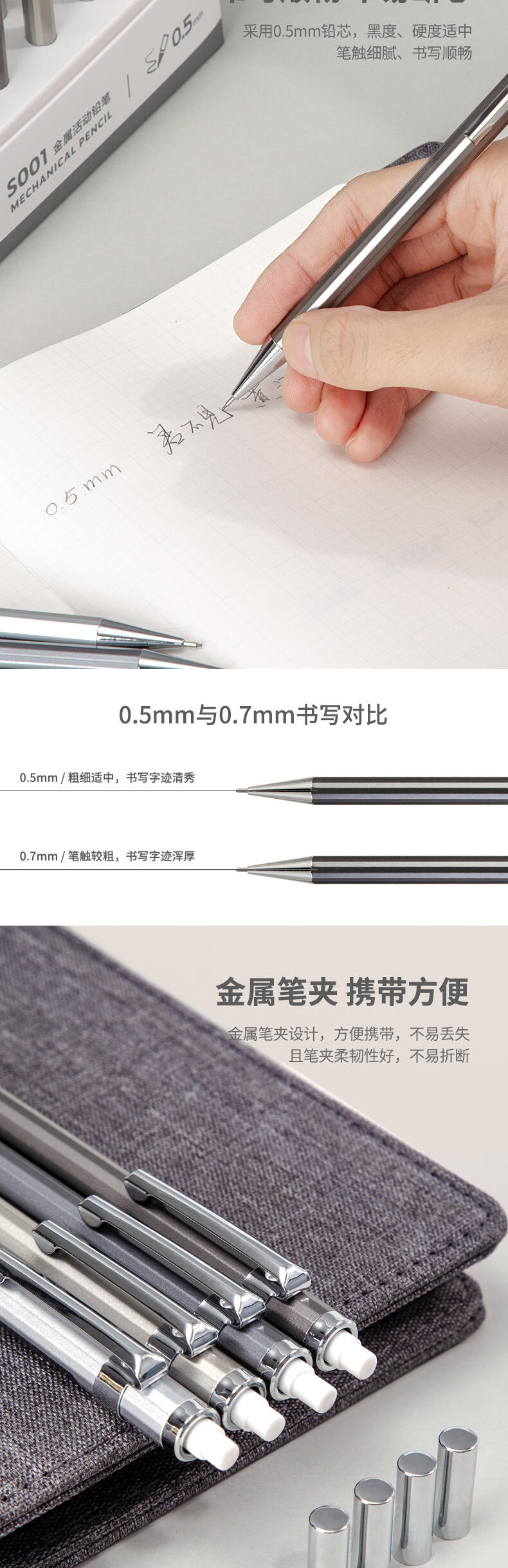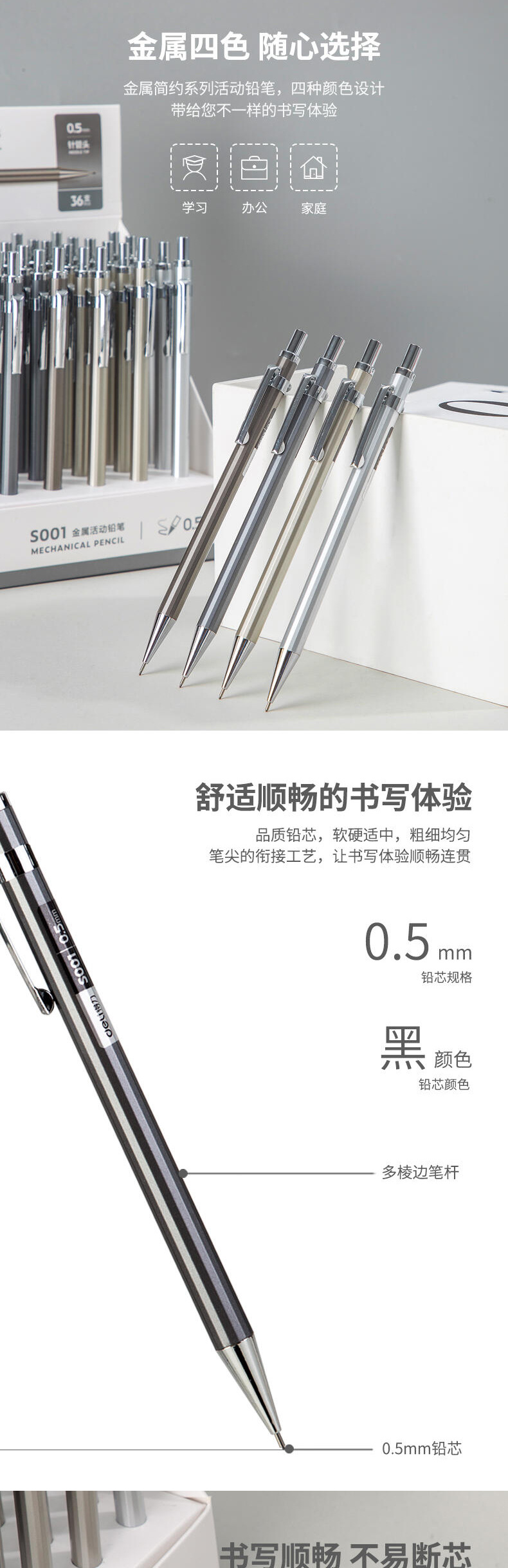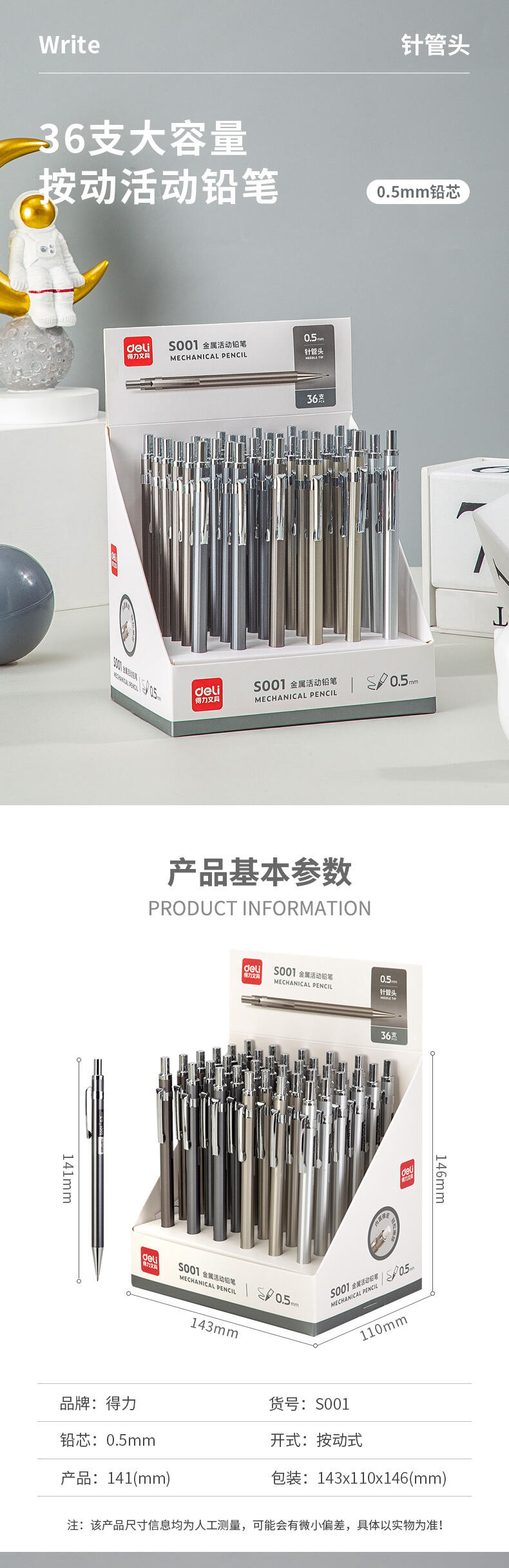델리 S001 금속 활동 연필 0.5mm 금속 활동 연필 자동 연필 학생 문구스토어 가기