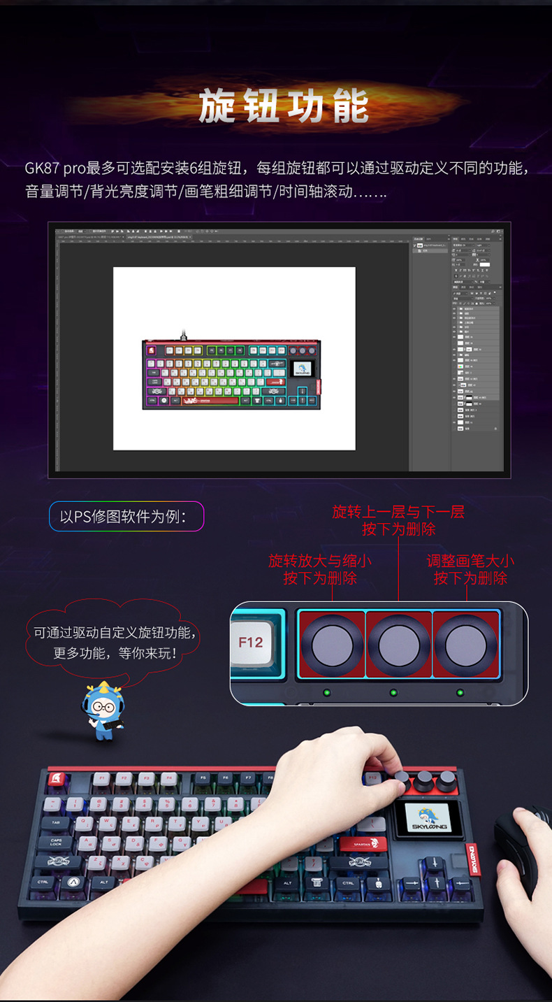 Skyloong 작은 버그 GK87pro 게임 기계식 키보드 3 모드 핫 플러그 블루투스 가스 켓 무선스토어 가기