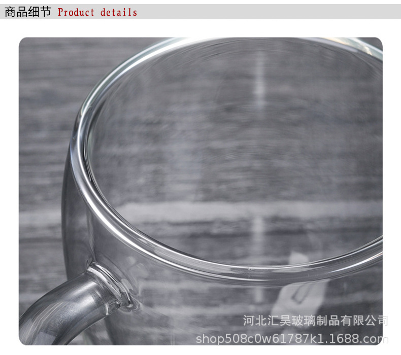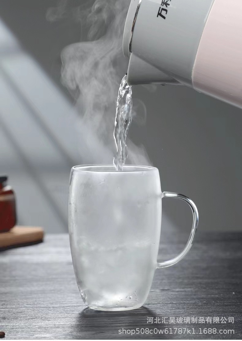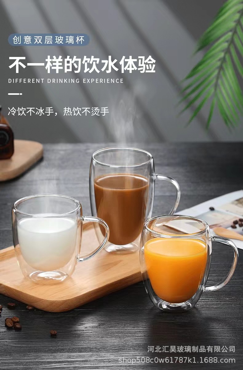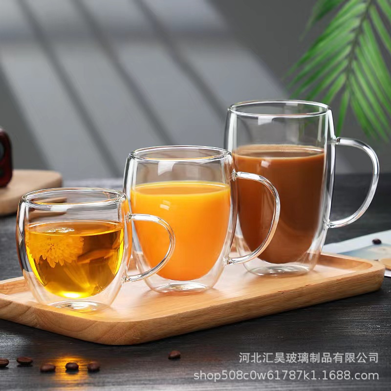 도매 더블 레이어 컵 핸들 높은 붕규산 유리 우유 차 음료 유리 컵 내열성 안티 스케일 유리 버블 티 컵