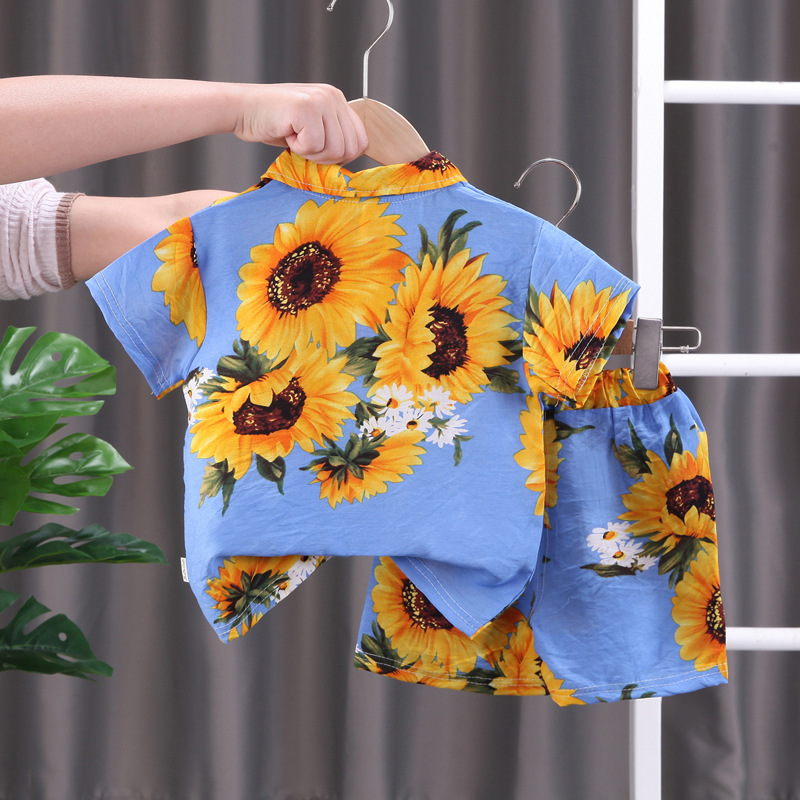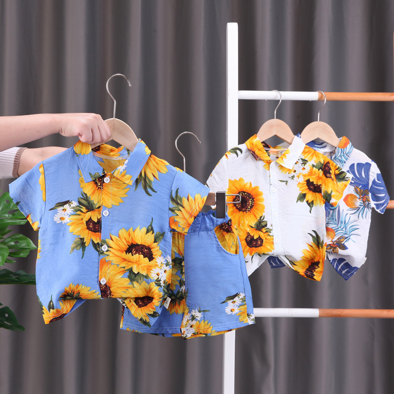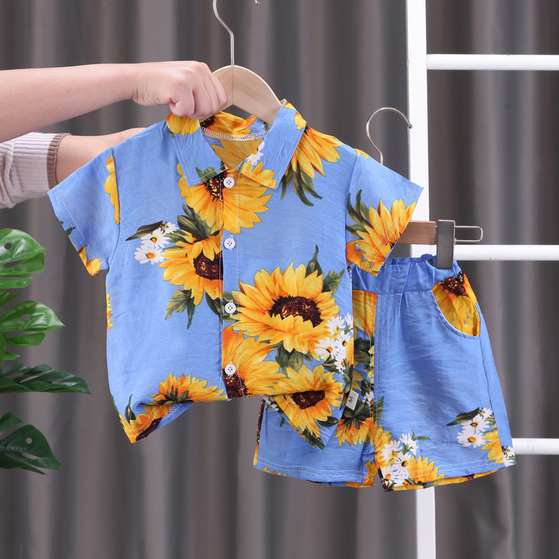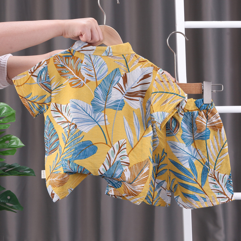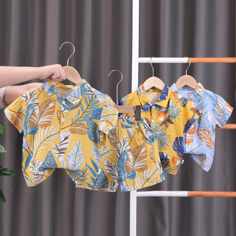 새로운 아동복 아기 여름 어린이 여름 전체 인쇄 패턴 반팔 세트 유행 소년 해외 무역 반팔 세트스토어 가기