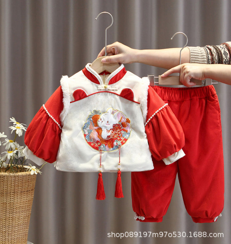 여자 새해 중국 스타일 세트 두꺼운 어린이 공주 스타일 복장 어린이 골동품 Hanfu 잡아 주 옷스토어 가기