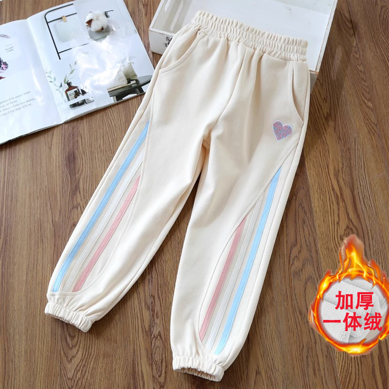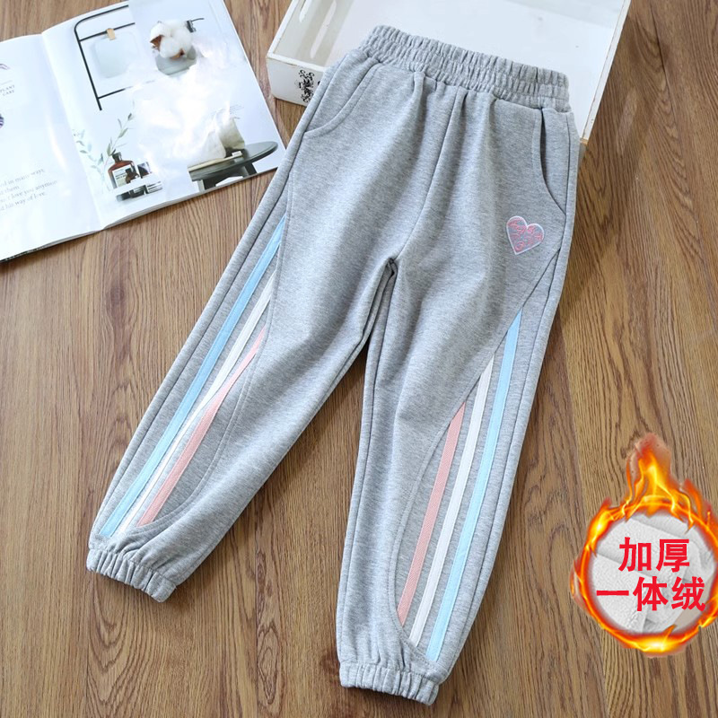 여아 겨울 캐주얼 바지 2023 새로운 아동 겨울 의류 원피스 벨벳 스웨트 팬츠 트렌디 한 기모 두꺼운 바지