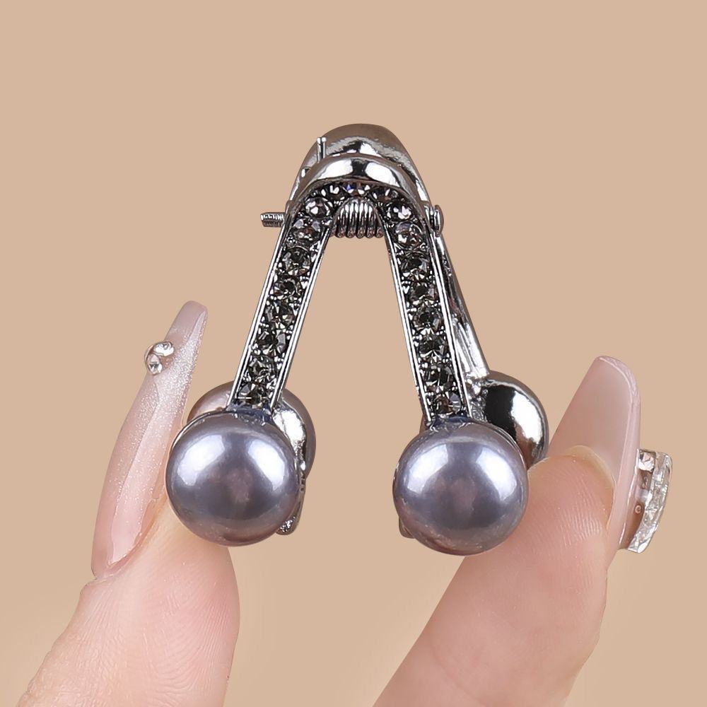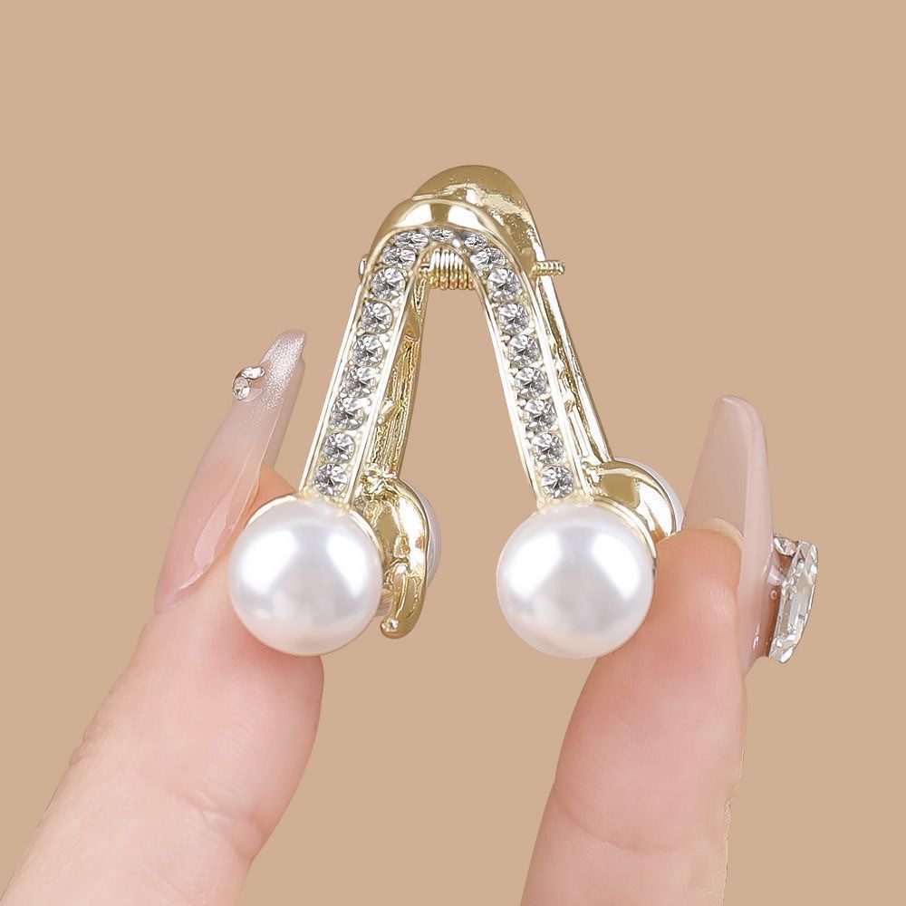 높은 말꼬리 고정 아티팩트 하프 볼 헤드 타이 머리핀 머리핀 여성용 모조 다이아몬드 V 자형 중간 클램프 말꼬리 클립 모자
