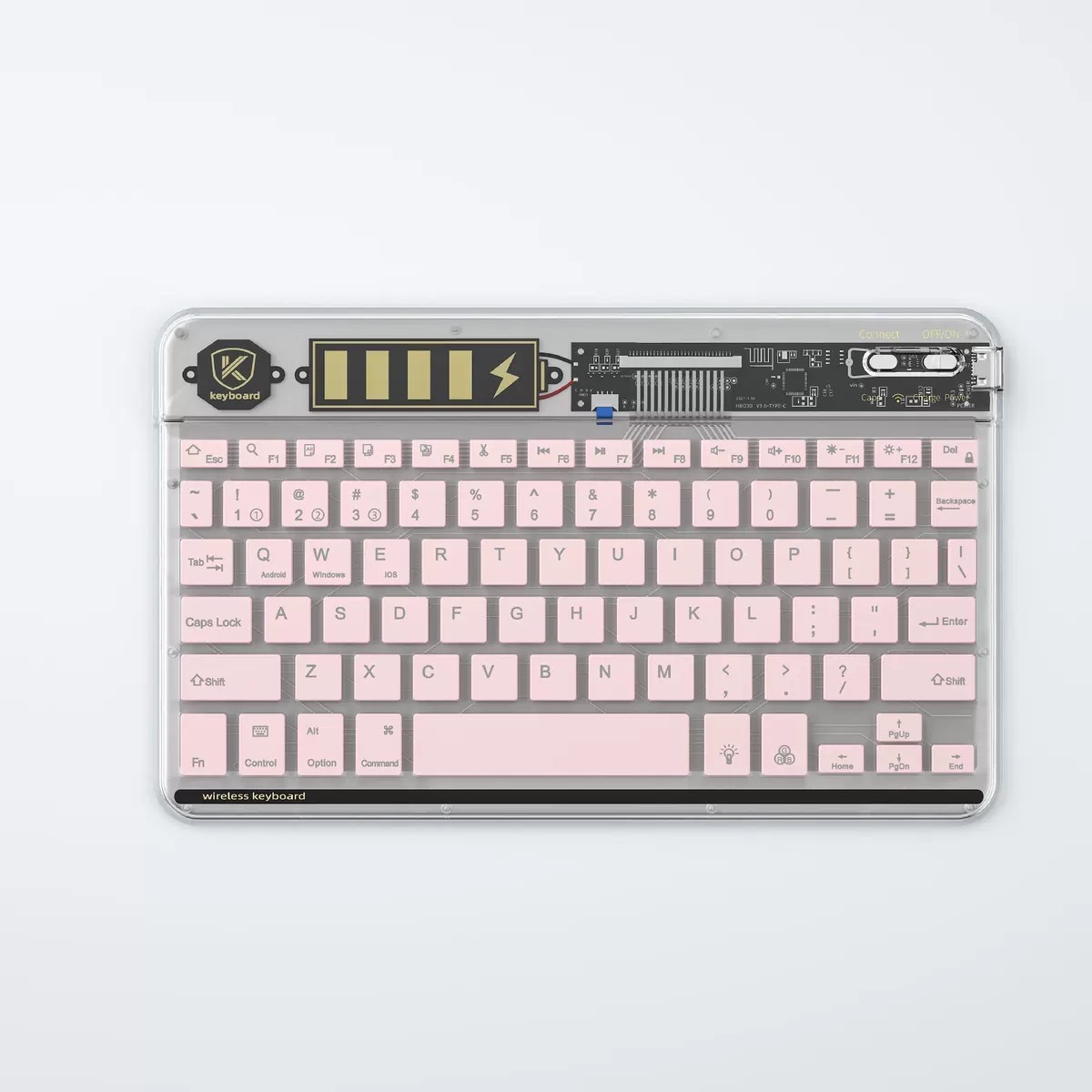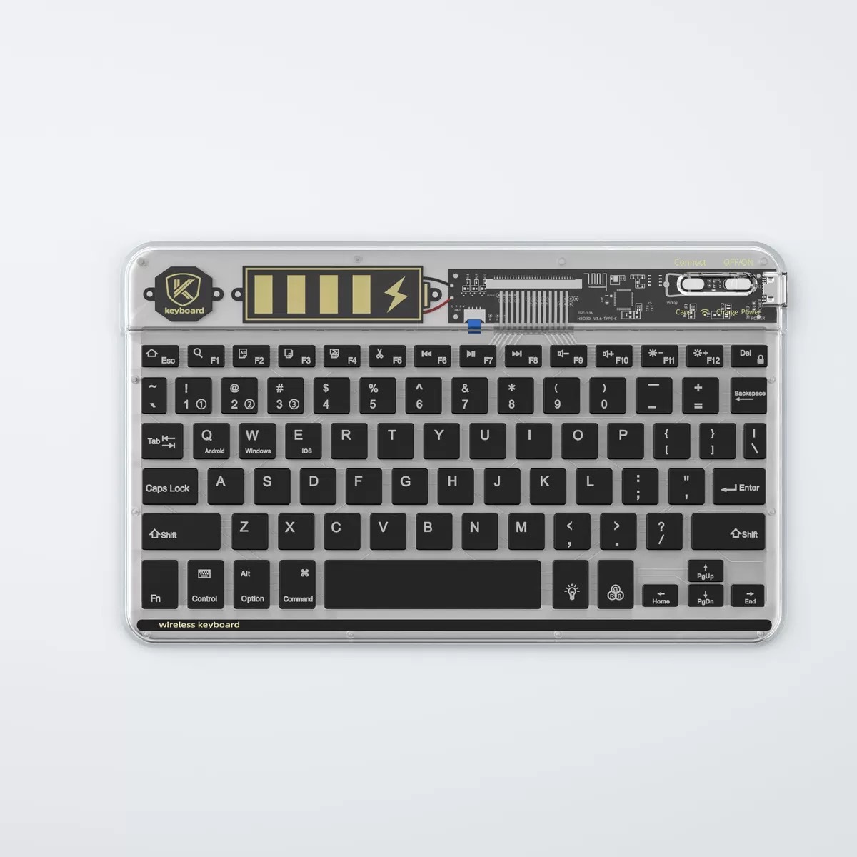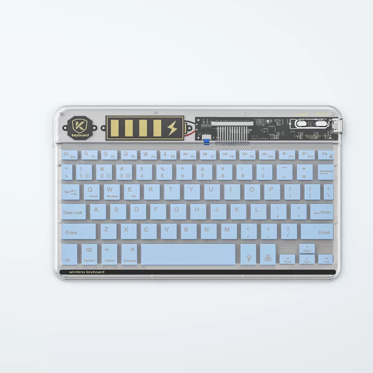 삼중 모드 블루투스 투명 키보드 타입-C 충전 다채로운 백라이트 블루투스 키보드 휴대용 얇고 가벼운 범용 키보드스토어 가기