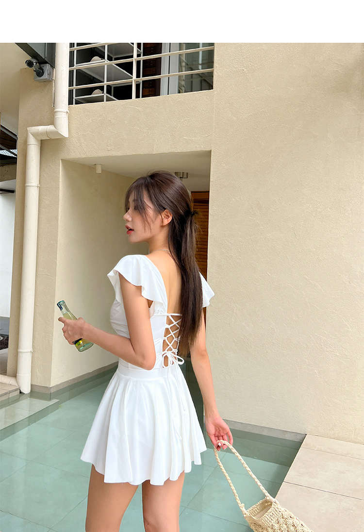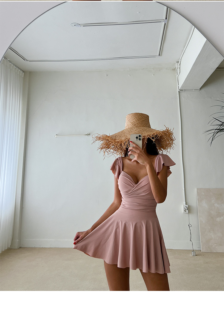 유행 간단한 여자의 원피스 원피스 투피스 수영복 다시 크로스 스트랩 배꼽 커버 슬리밍 비치 섹시한 수영복