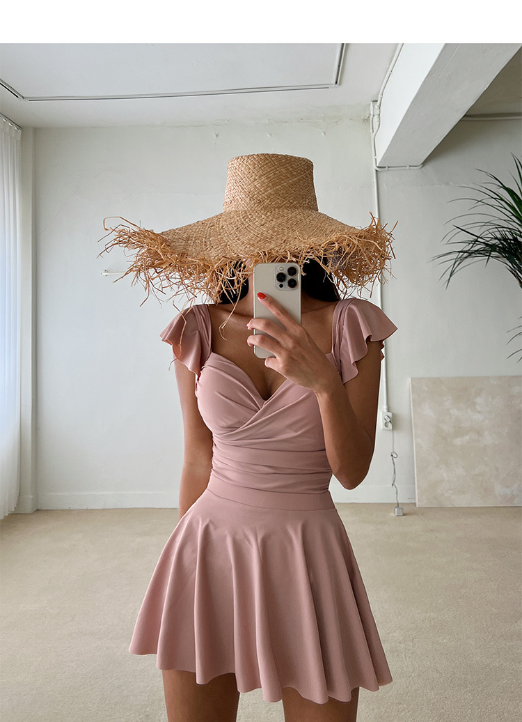 유행 간단한 여자의 원피스 원피스 투피스 수영복 다시 크로스 스트랩 배꼽 커버 슬리밍 비치 섹시한 수영복스토어 가기