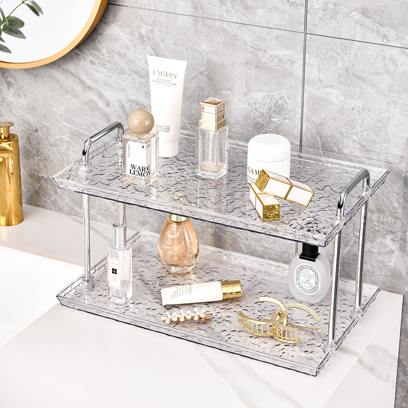 더블 레이어 스토리지 랙 가정용 욕실 화장실 아로마 테라피 화장품 장식품 데스크탑 스토리지 투명 트레이 찻잔 랙
