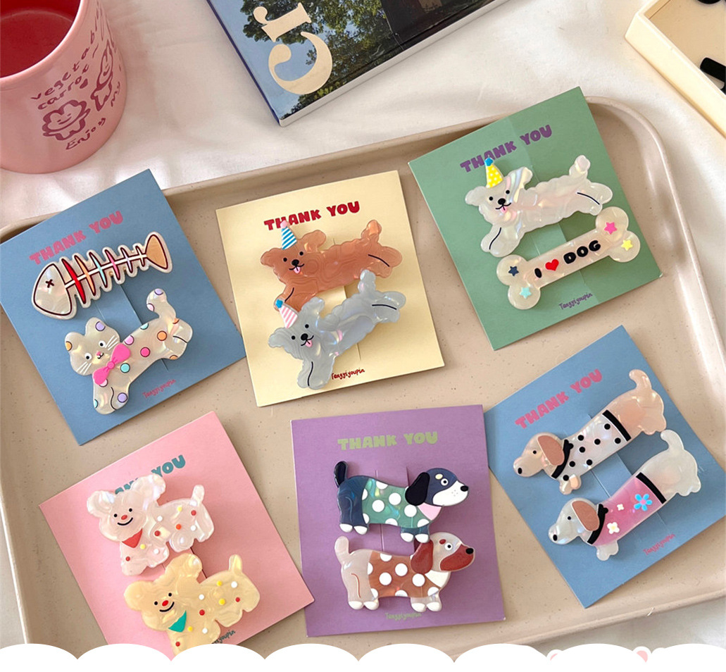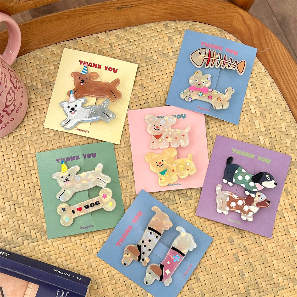 귀여운 만화 아크릴 강아지 머리핀 조합 소녀 가슴 아픈 머리핀 앞머리 클립 어린이 앞머리 클립 헤어 액세서리스토어 가기