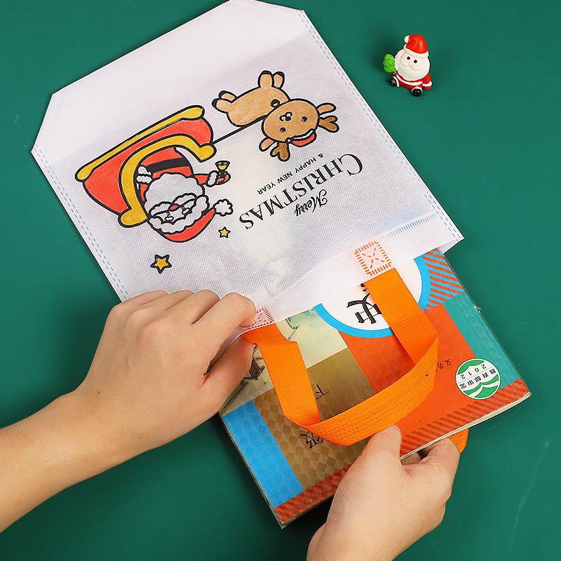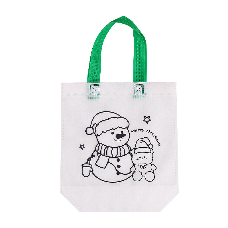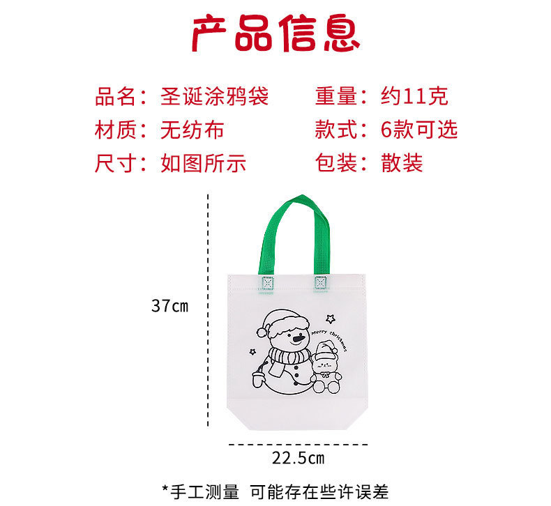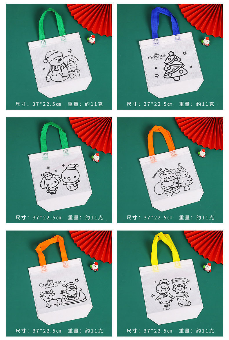卡通圣诞涂鸦手提袋儿童手工绘画填色无纺布袋子卡通DI手绘涂鸦袋