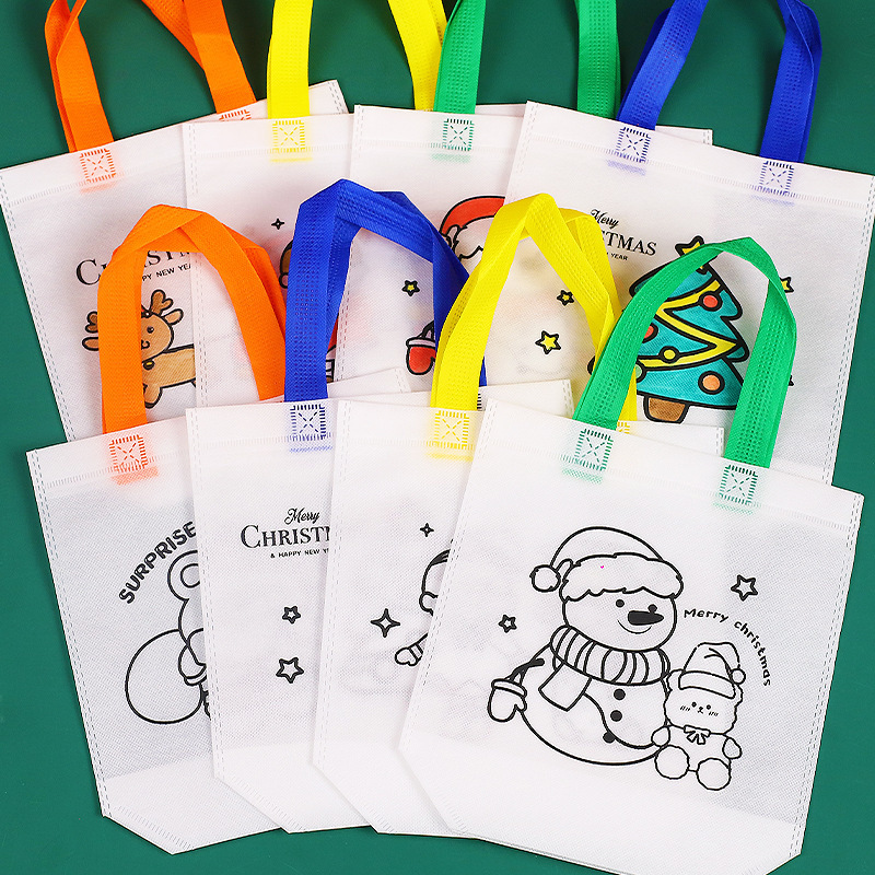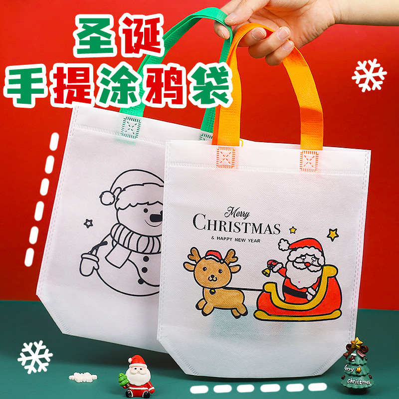 크리스마스 선물 낙서 토트 백 어린이 수제 그림 크리스마스 선물 가방 어린이 유치원 선물