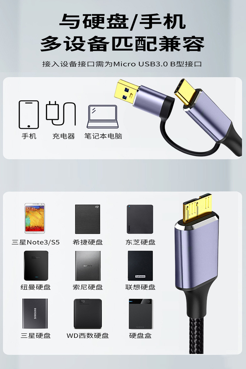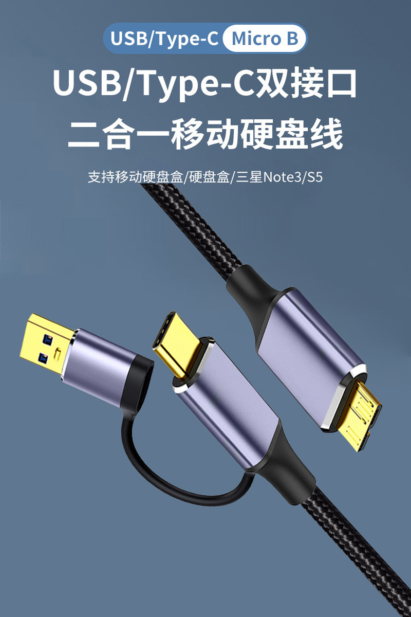 국경 간 신제품 유형-c-microB 모바일 하드 디스크 데이터 케이블 2-in -1 다기능 컴퓨터 및 휴대폰 연결